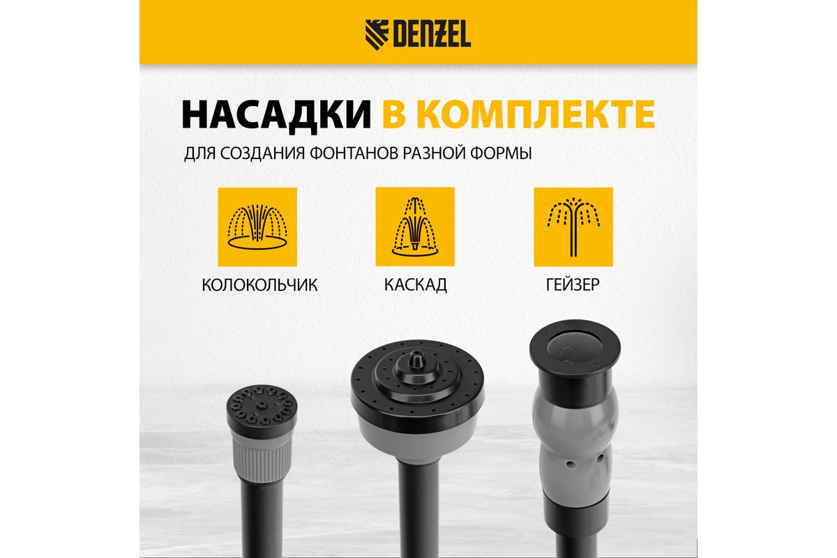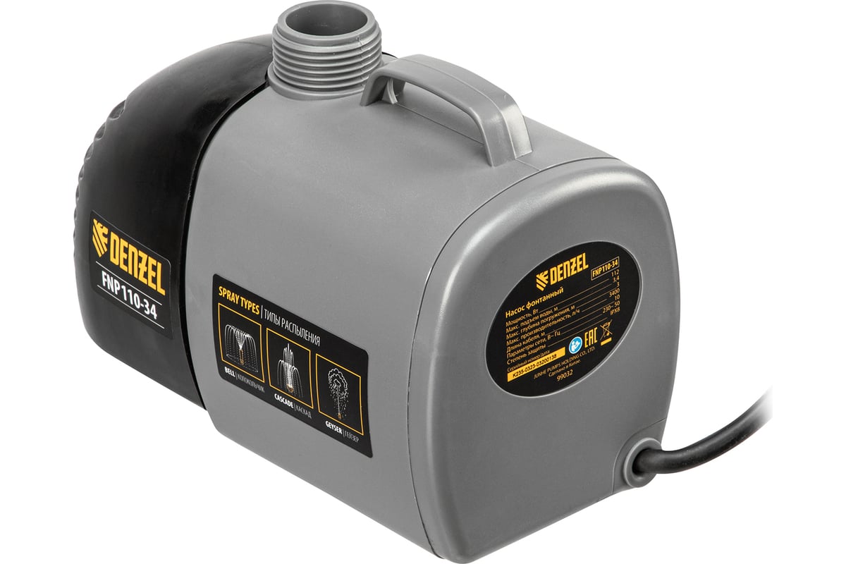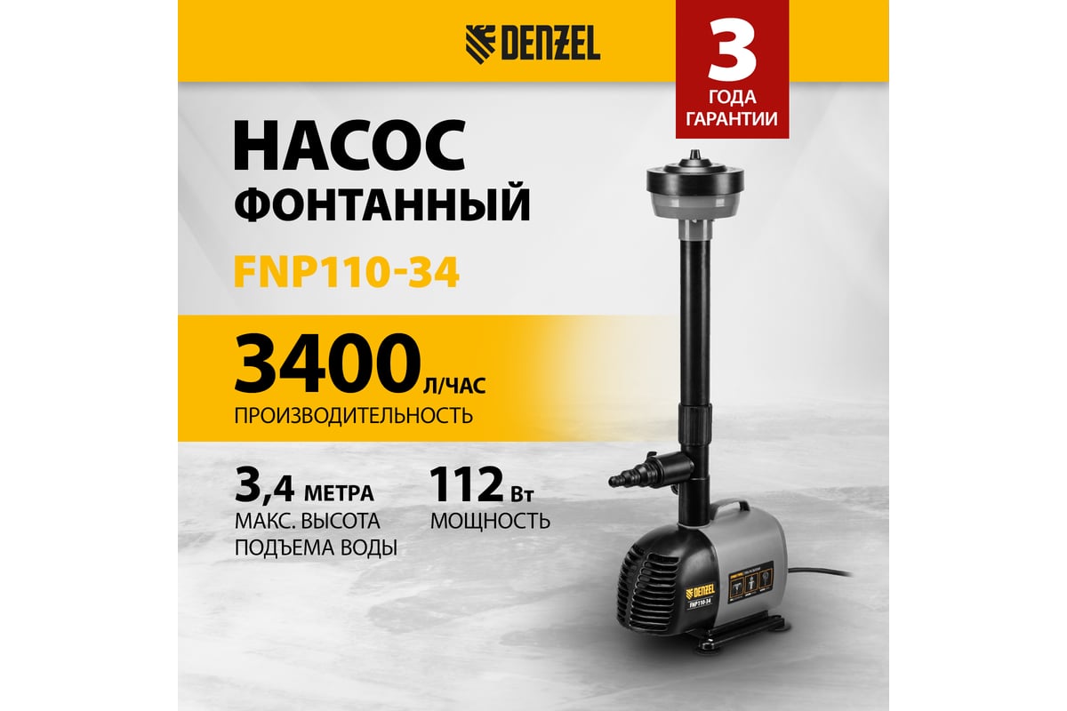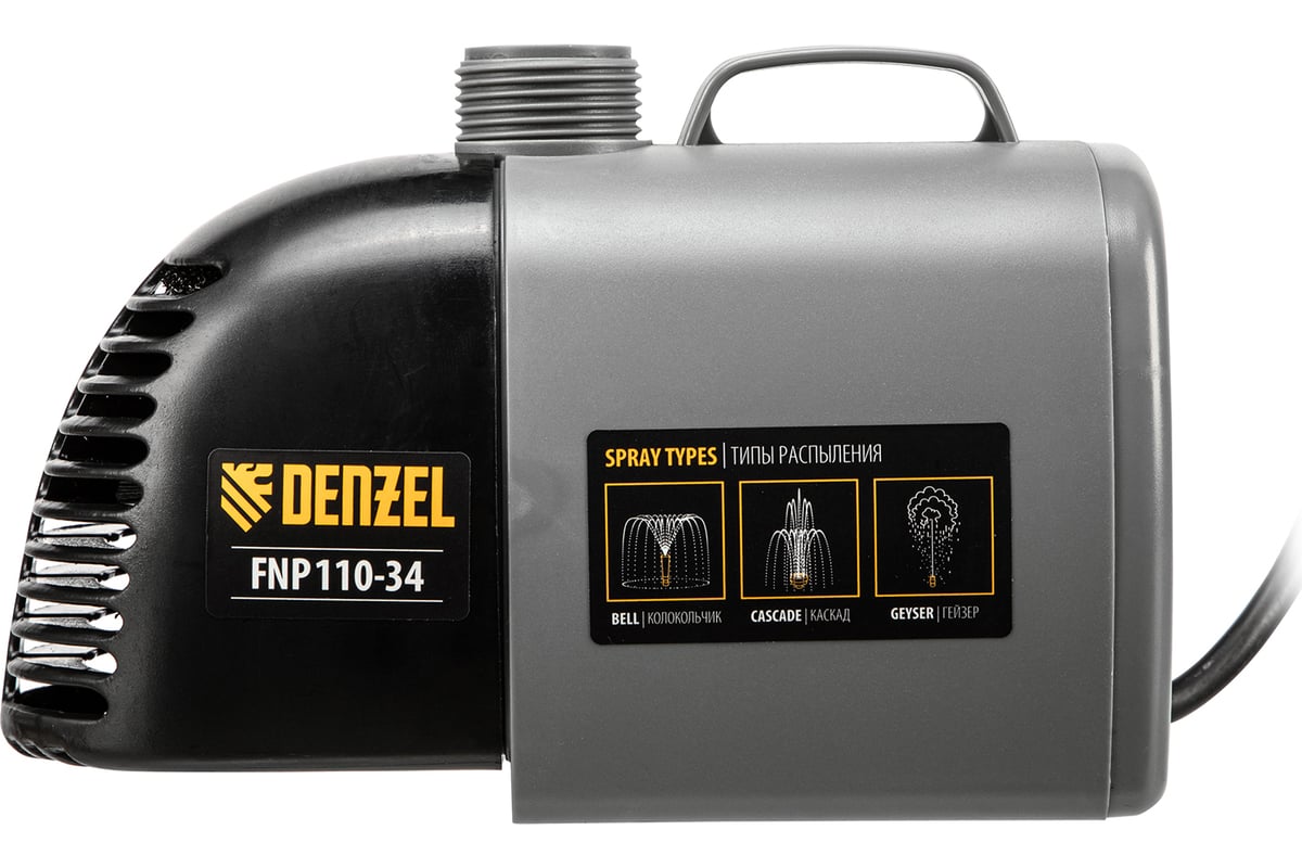 Насос фонтанный fnp110-34, 112 вт, подъем 3,4 м, 3400 л/ч, колокольчик/каскад/гейзер Denzel 99032