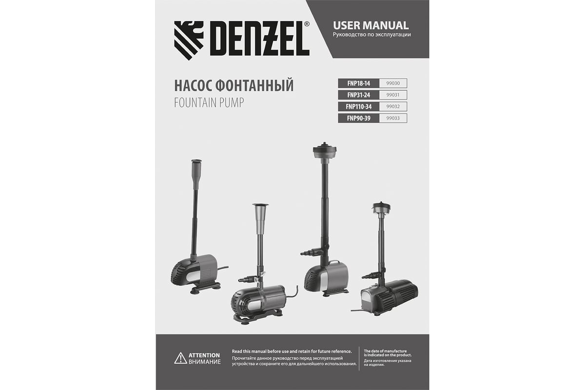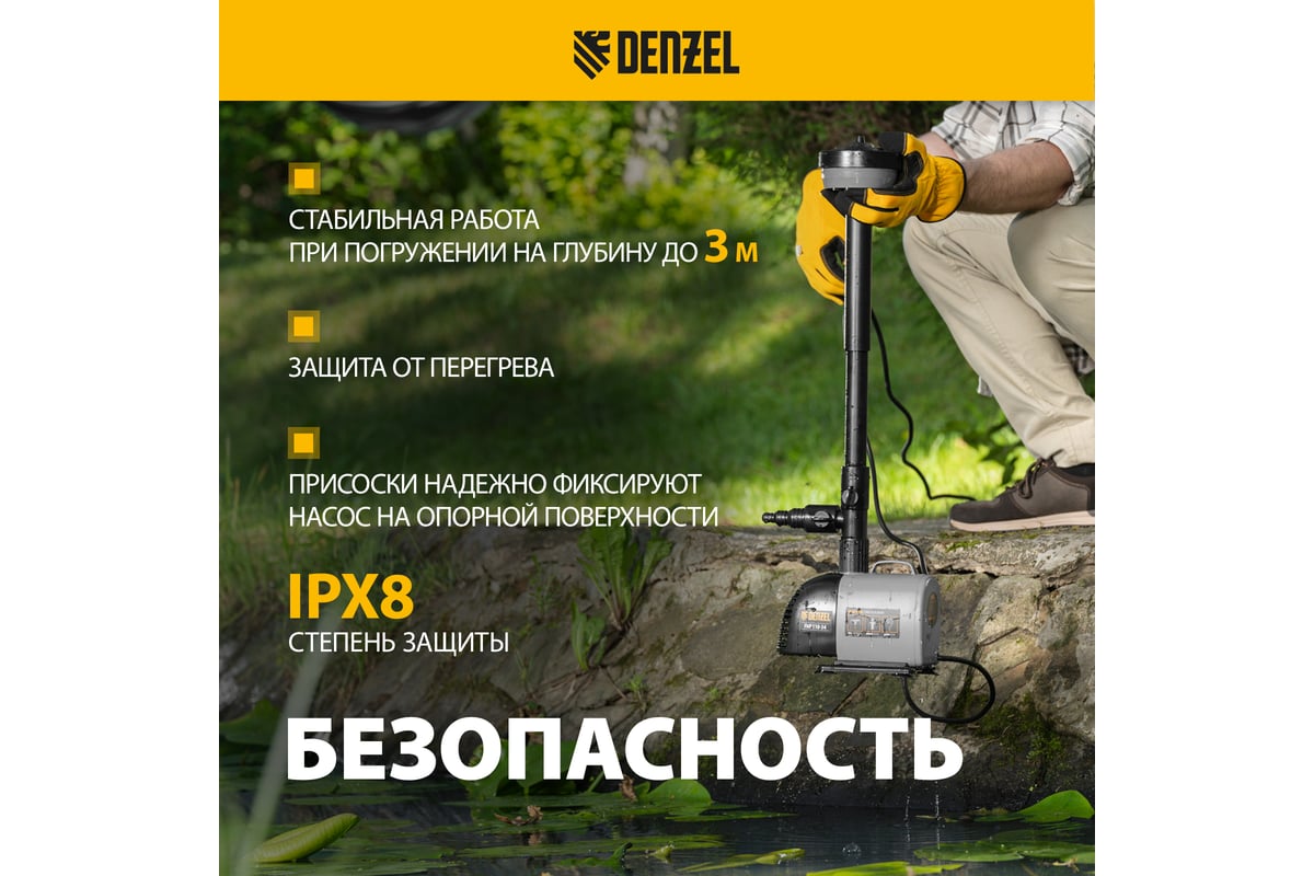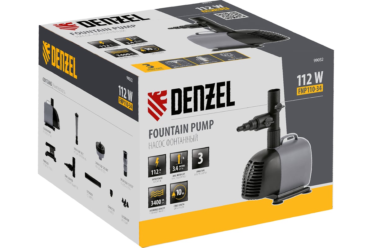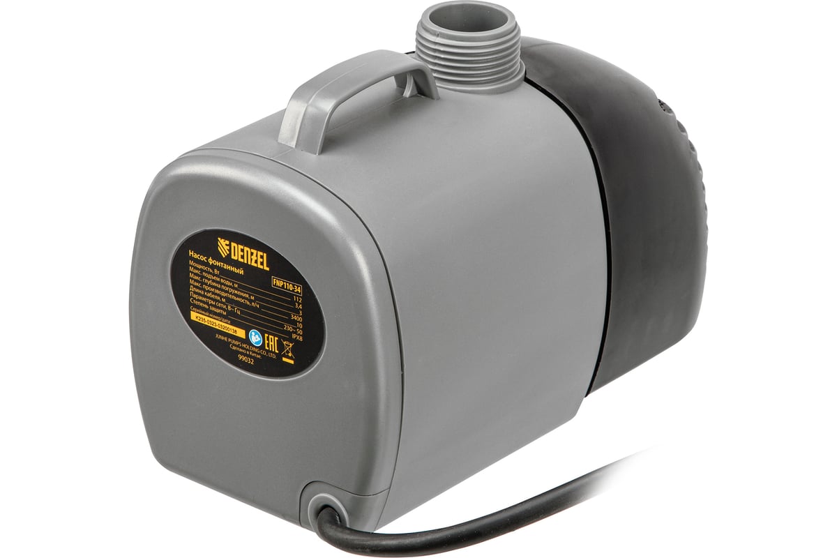 Насос фонтанный fnp110-34, 112 вт, подъем 3,4 м, 3400 л/ч, колокольчик/каскад/гейзер Denzel 99032