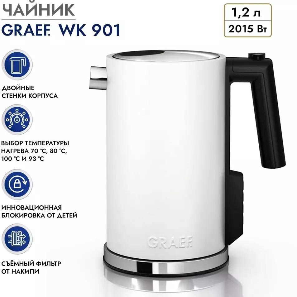 Чайник электрический Graef WK901EU белый, нержавеющая сталь/пластик