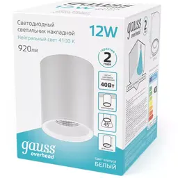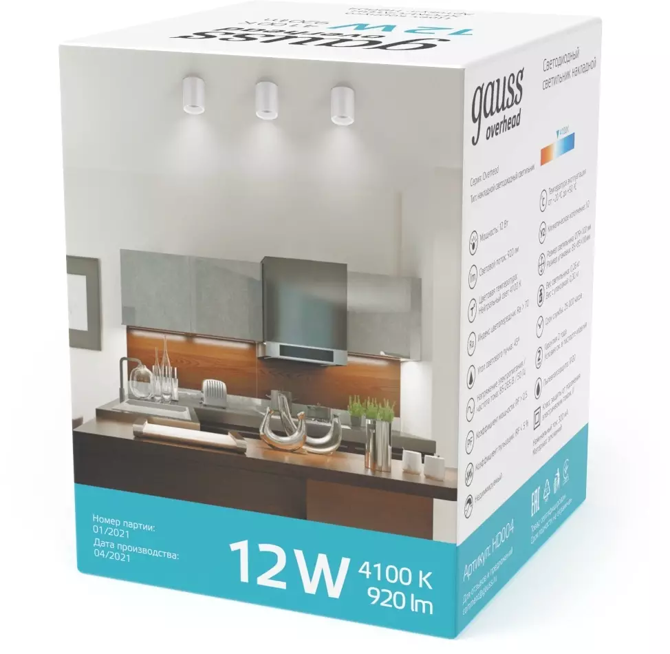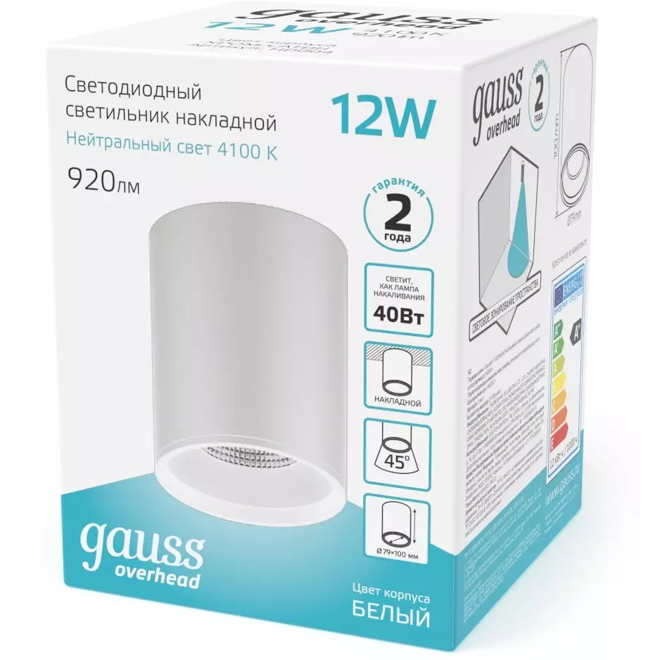 Светильник Gauss Overhead потолочный 12Вт 4100K цв.св.:бел.нейт. белый (hd011)