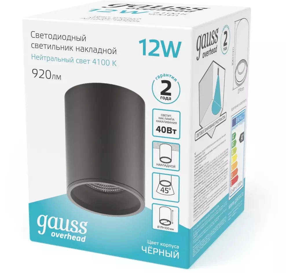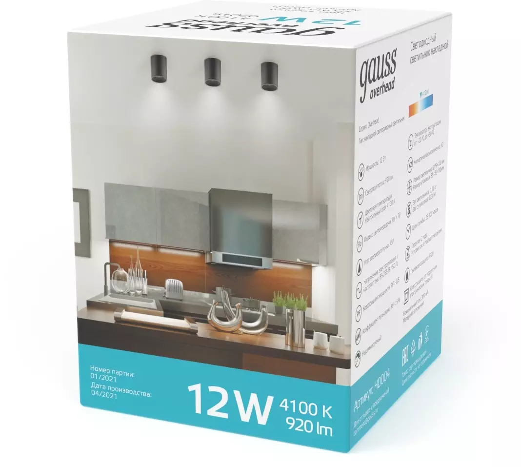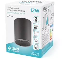 Светильник Gauss Overhead потолочный 12Вт 4100K цв.св.:бел.нейт. черный (hd007)
