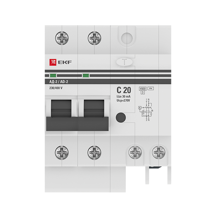 "Дифференциальный автоматический выключатель АД-2(4) (S) EKF PROxima представляет собой аппарат, сочетающий функции автоматического выключателя с устройством защитного отключения. При обнаружении автоматическим выключателем в защищаемом участке сети тока утечки (повреждения) на землю или сверхтока (тока перегрузки или короткого замыкания) происходит срабатывание устройства, приводящее к отключению защищаемой сети. Особое отличие дифференциальных автоматов EKF – в наличии встроенного блока защиты от перенапряжения.