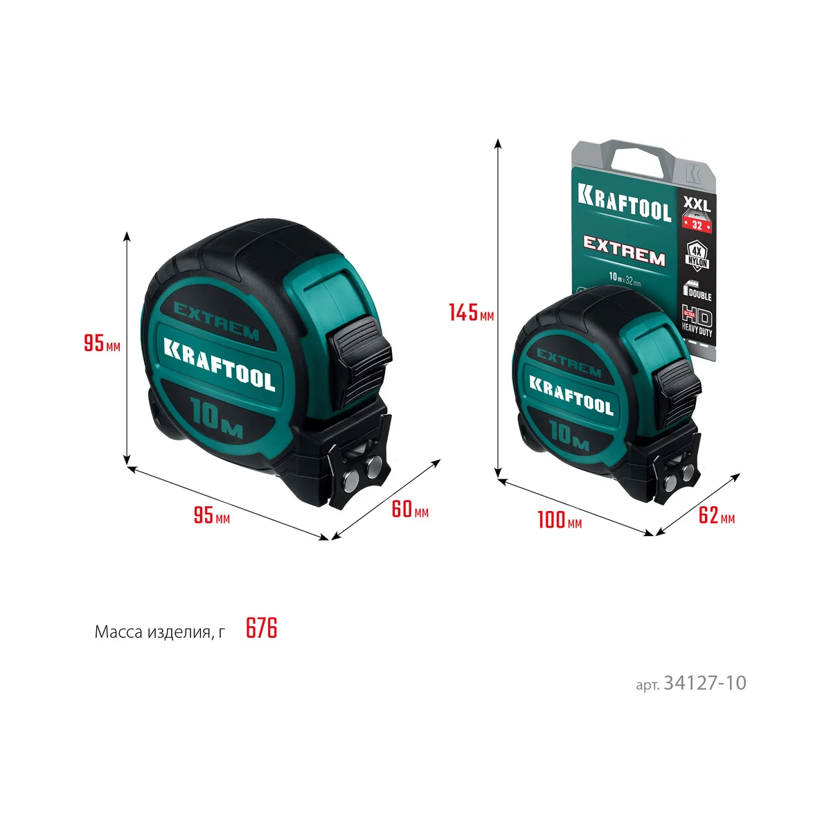 Рулетка KRAFTOOL Extrem (34127-10) 10 мх32 мм