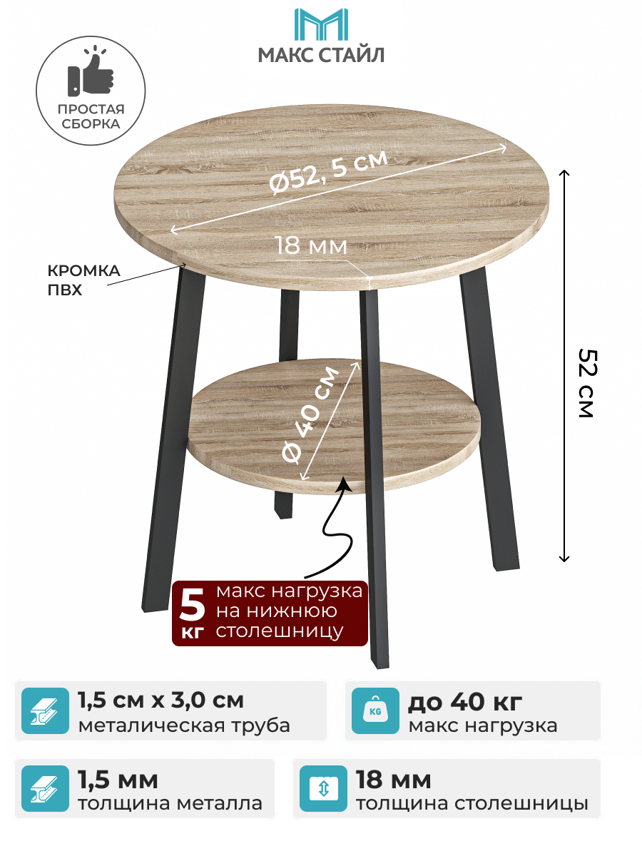 • Максимальная нагрузка 40 кг (общая, на стол); 5 кг (на полку)