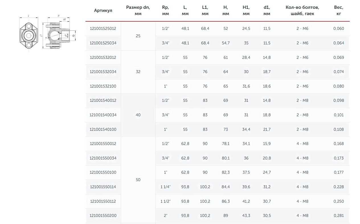 • Условный проход 25 мм