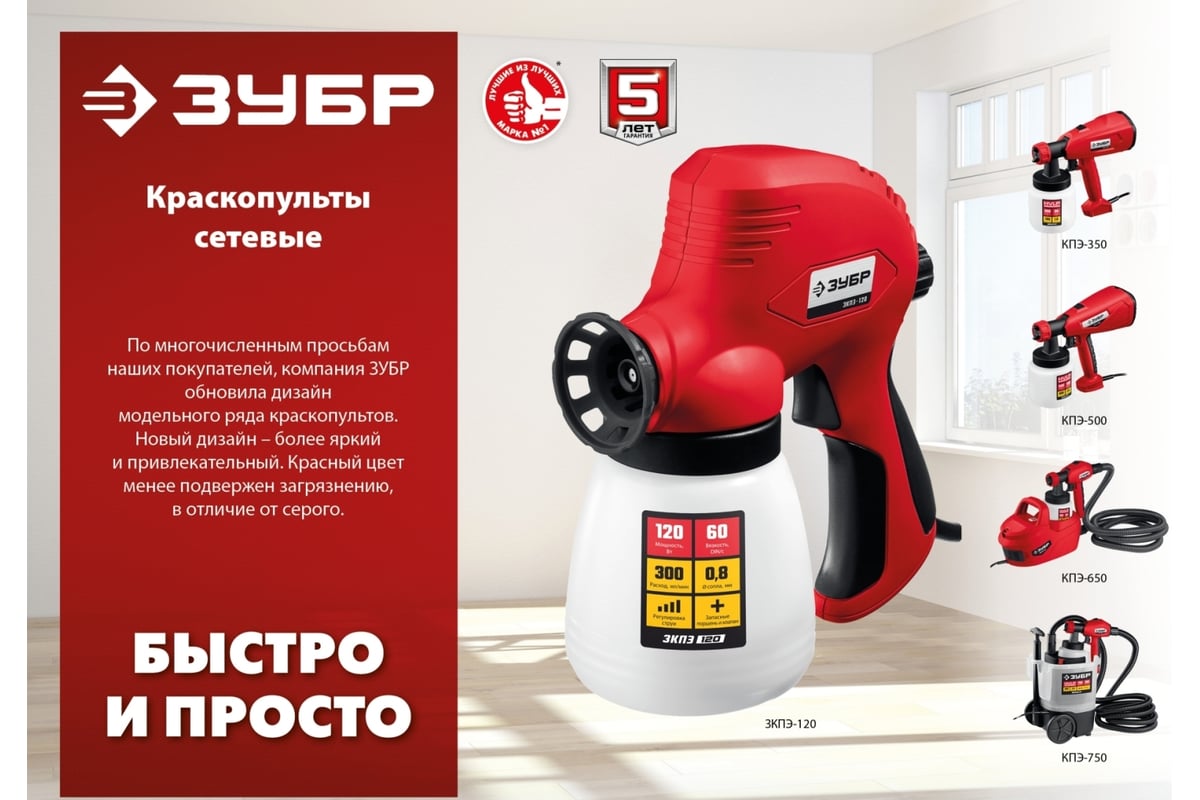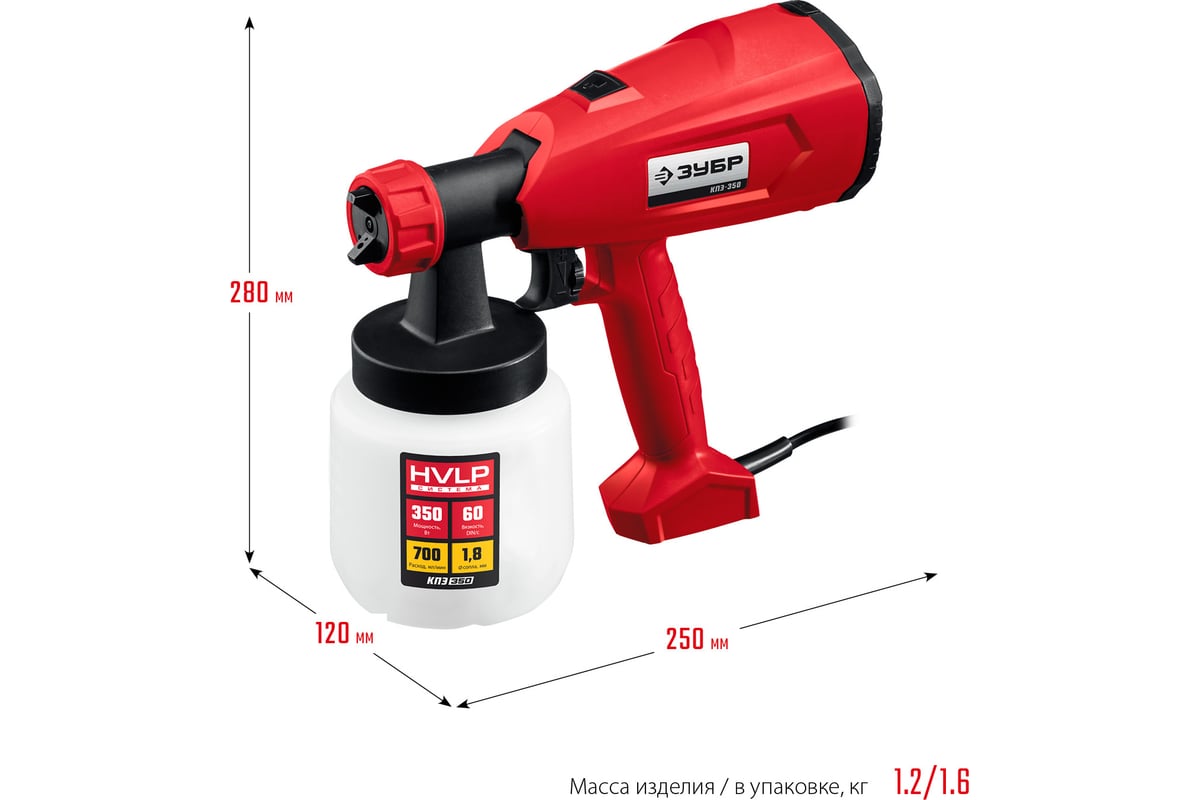 Малый вес электрического краскопульта Зубр МАСТЕР КПЭ-350;