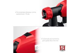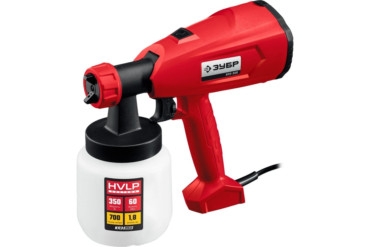 Электрический краскопульт ЗУБР 350 Вт КПЭ-350 помогает наносить различные лакокрасочные материалы максимальной вязкостью 60 DIN/сек.