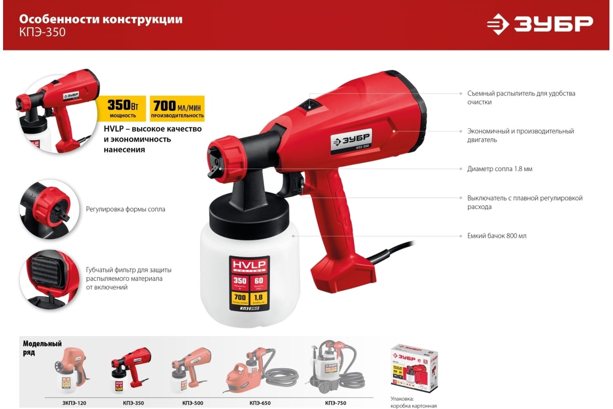Отличительной особенностью модели является система HVLP, которая обеспечивает точное и экономичное распыление.