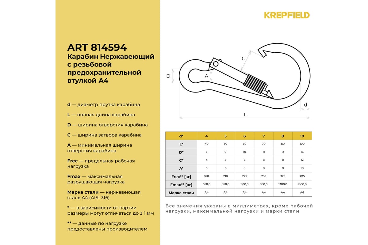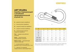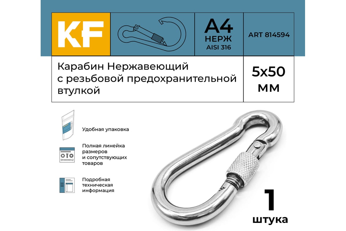 Нержавеющий карабин KREPFIELD 5x50 art 814594 а4 c резьбовой предохранительной втулкой 1 шт. 814594А4КАРАБИН5Х50-1