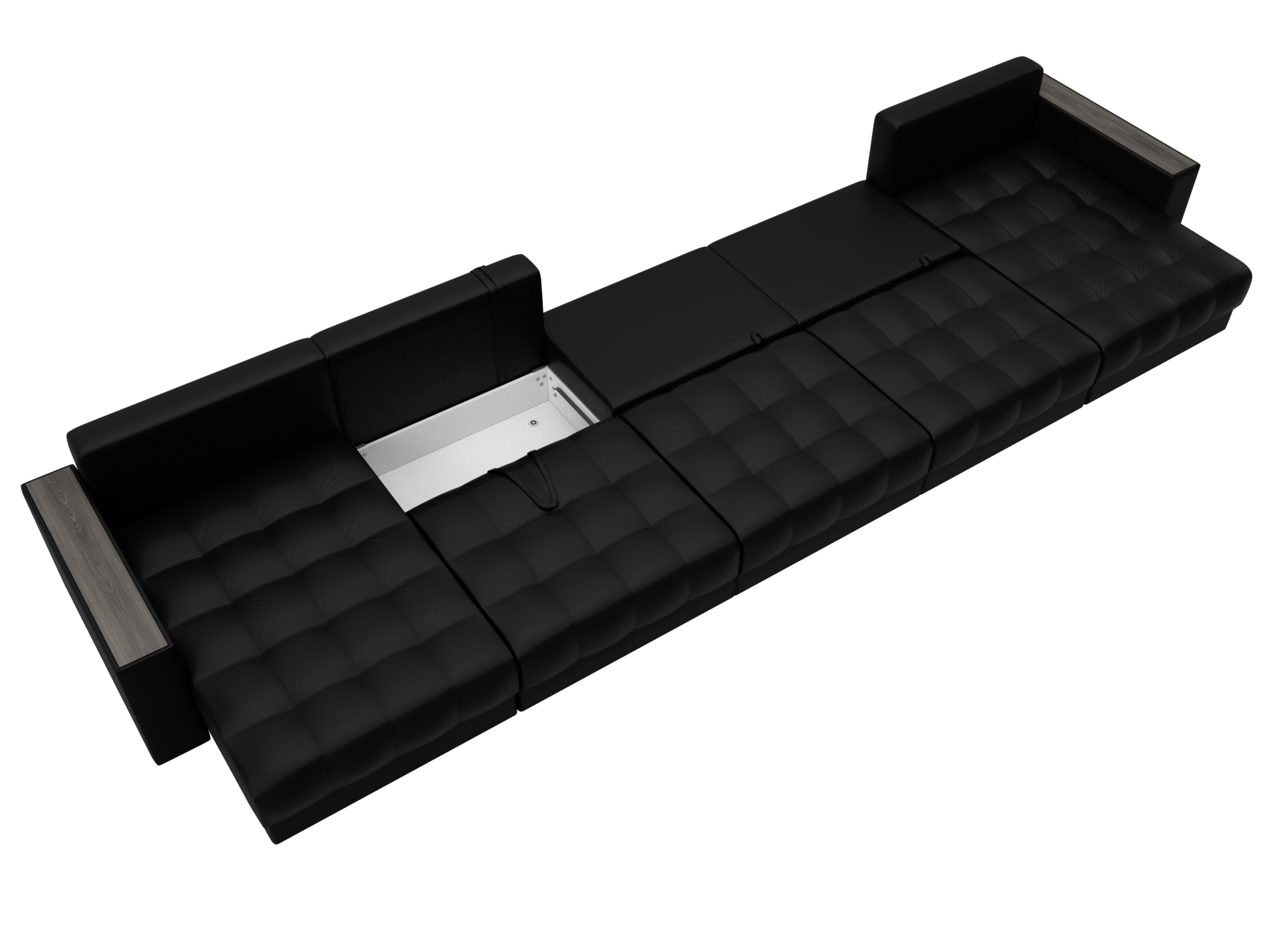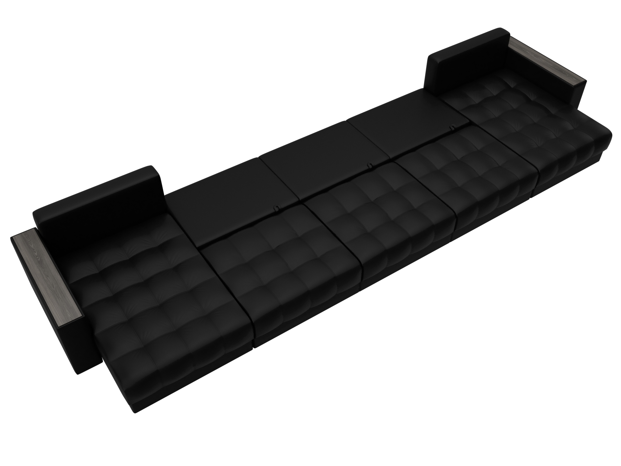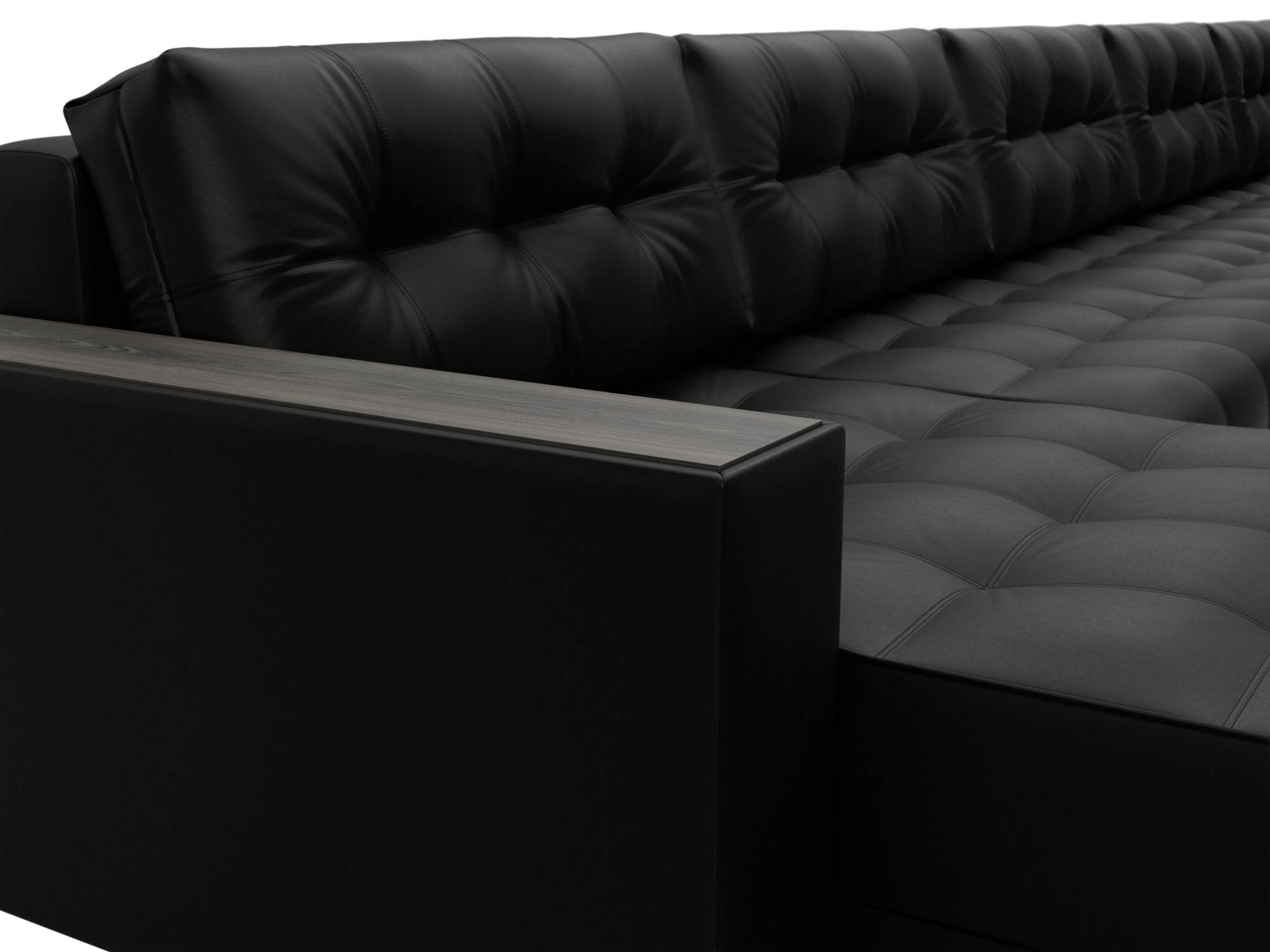 Диван П-образный Лига Диванов Лига-049 НПБ МегаЛонг с декором (экокожа Grifon 18 черный)