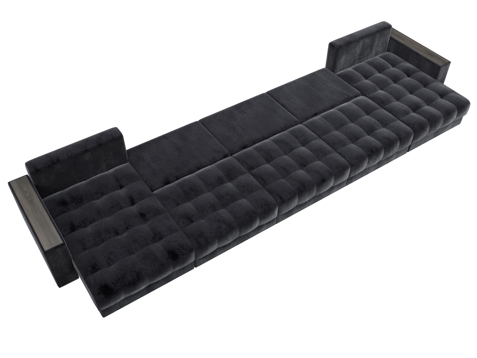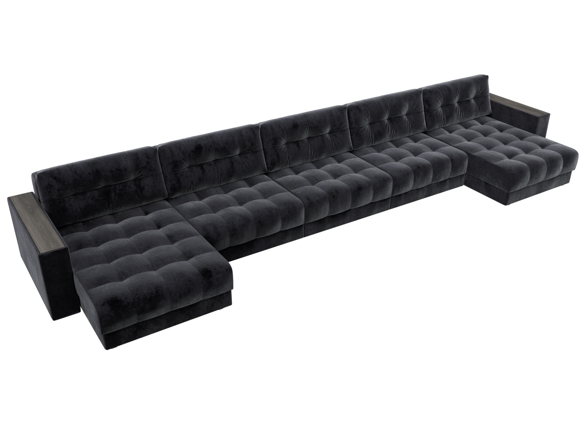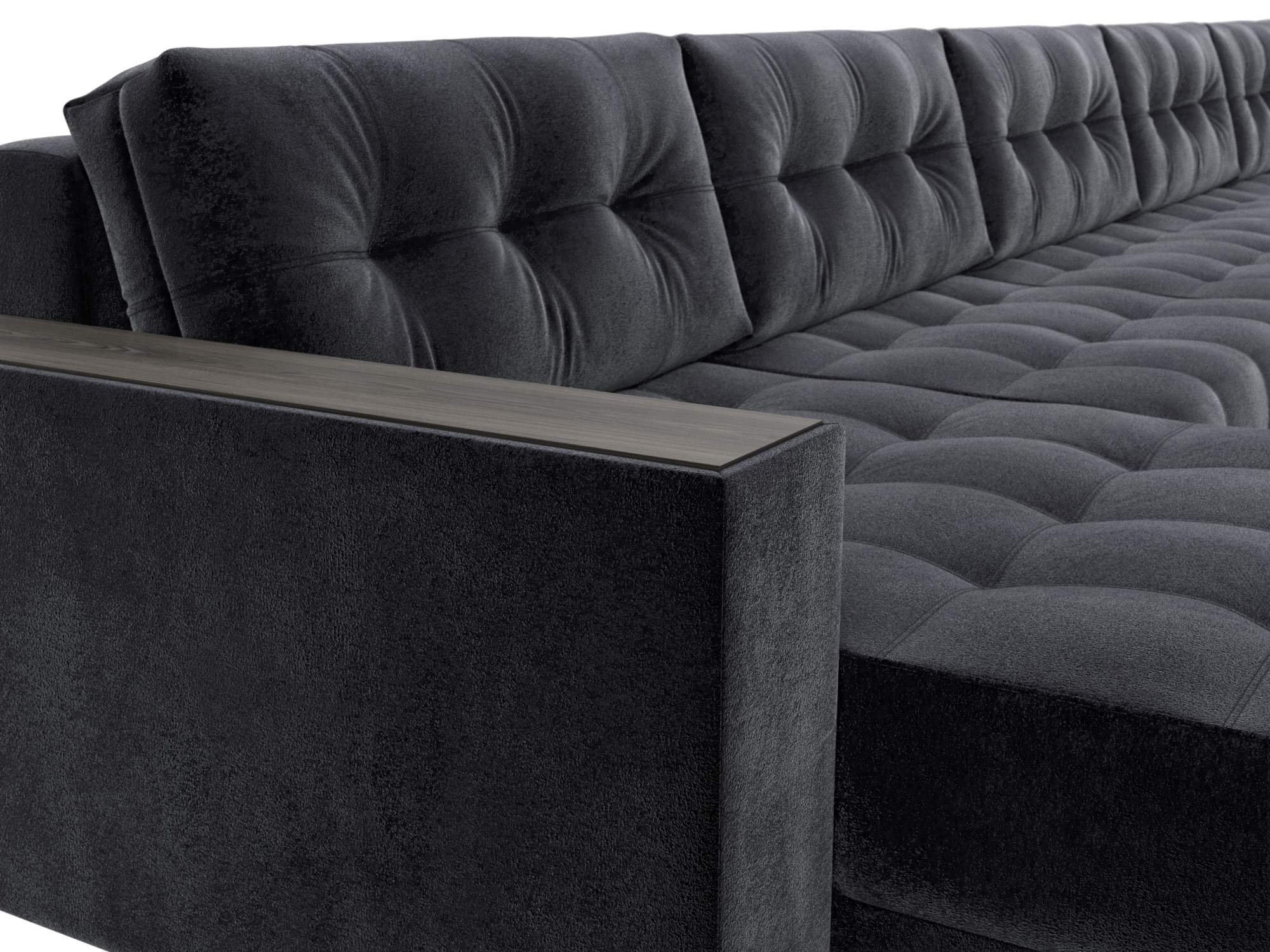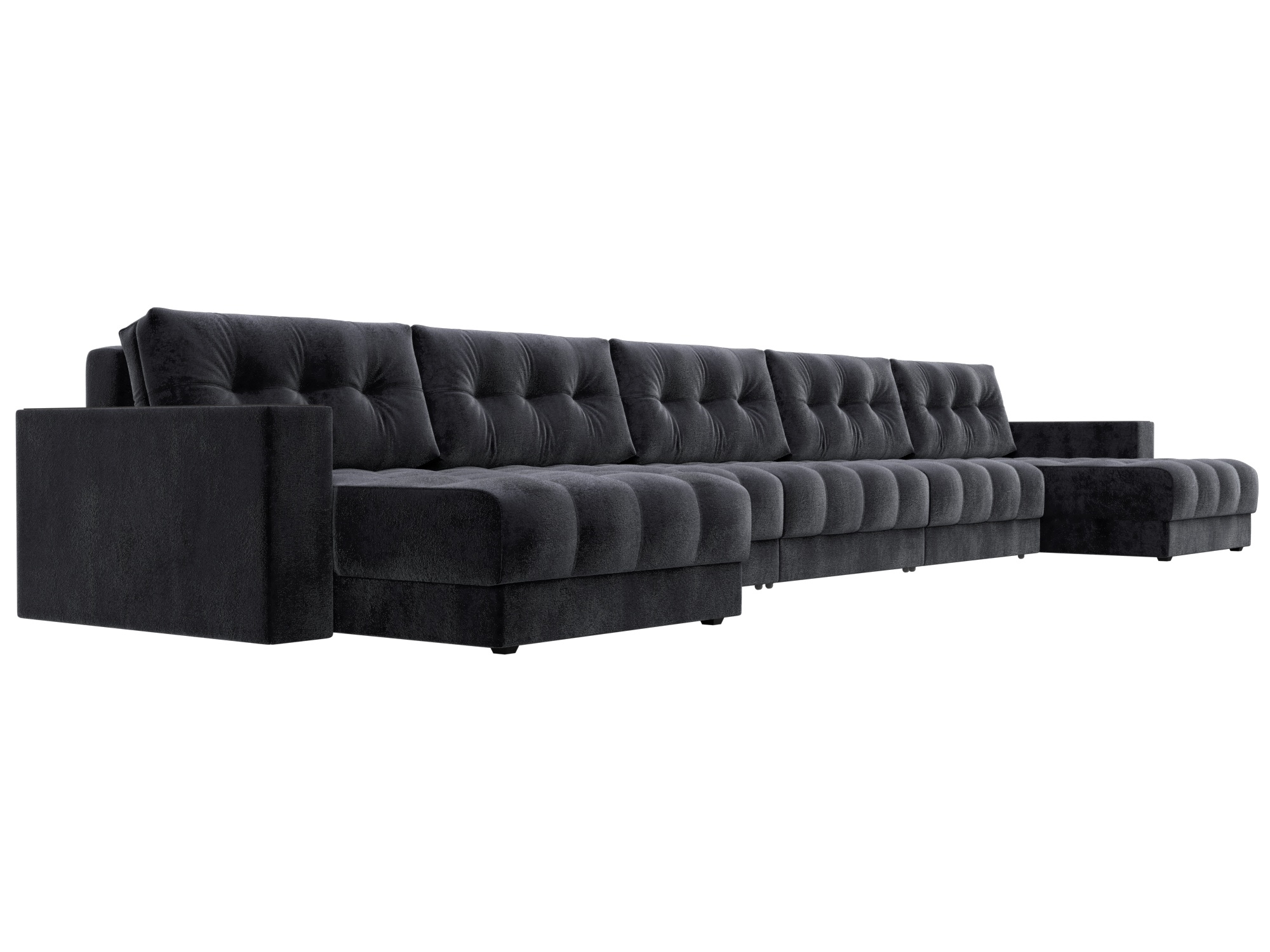 Диван П-образный Лига Диванов Лига-049 НПБ МегаЛонг с декором (велюр Tower 11 темно-серый)