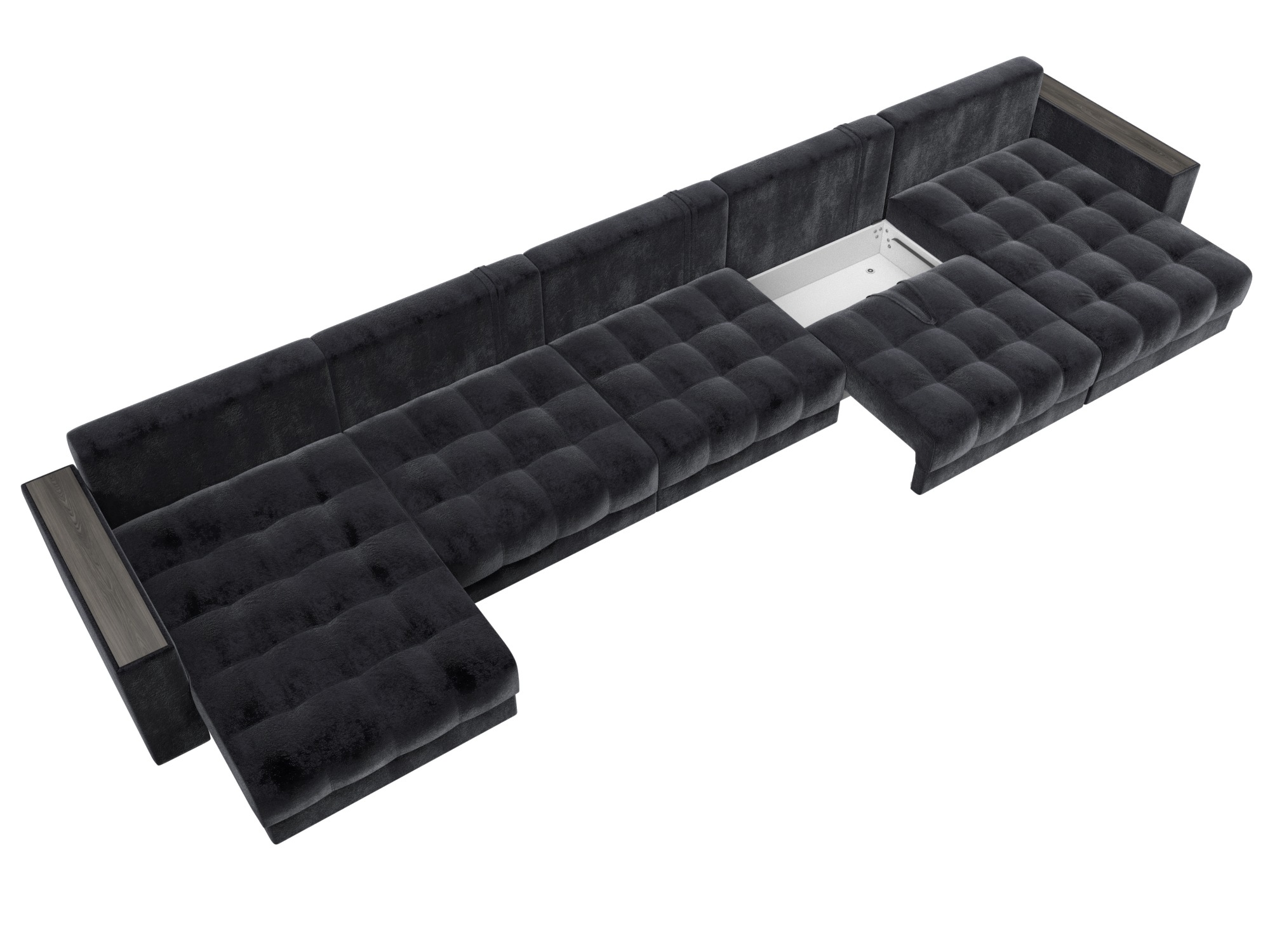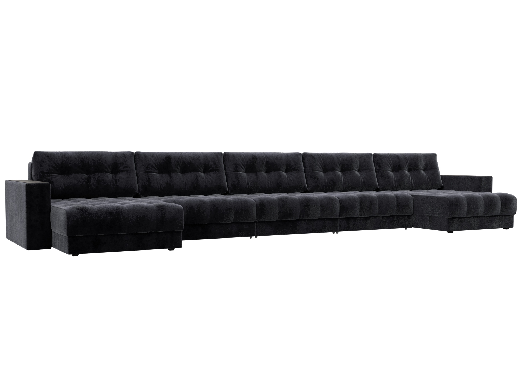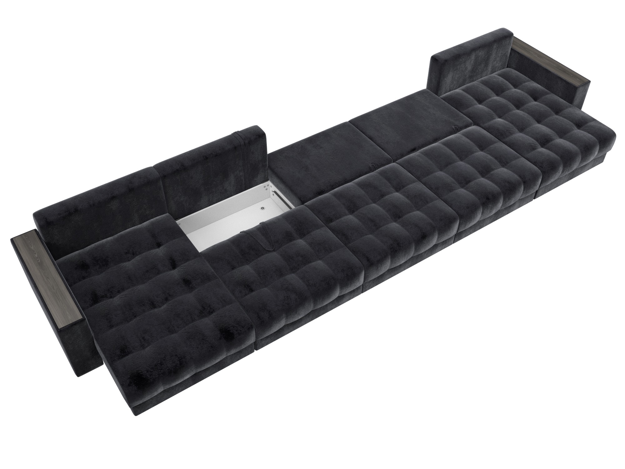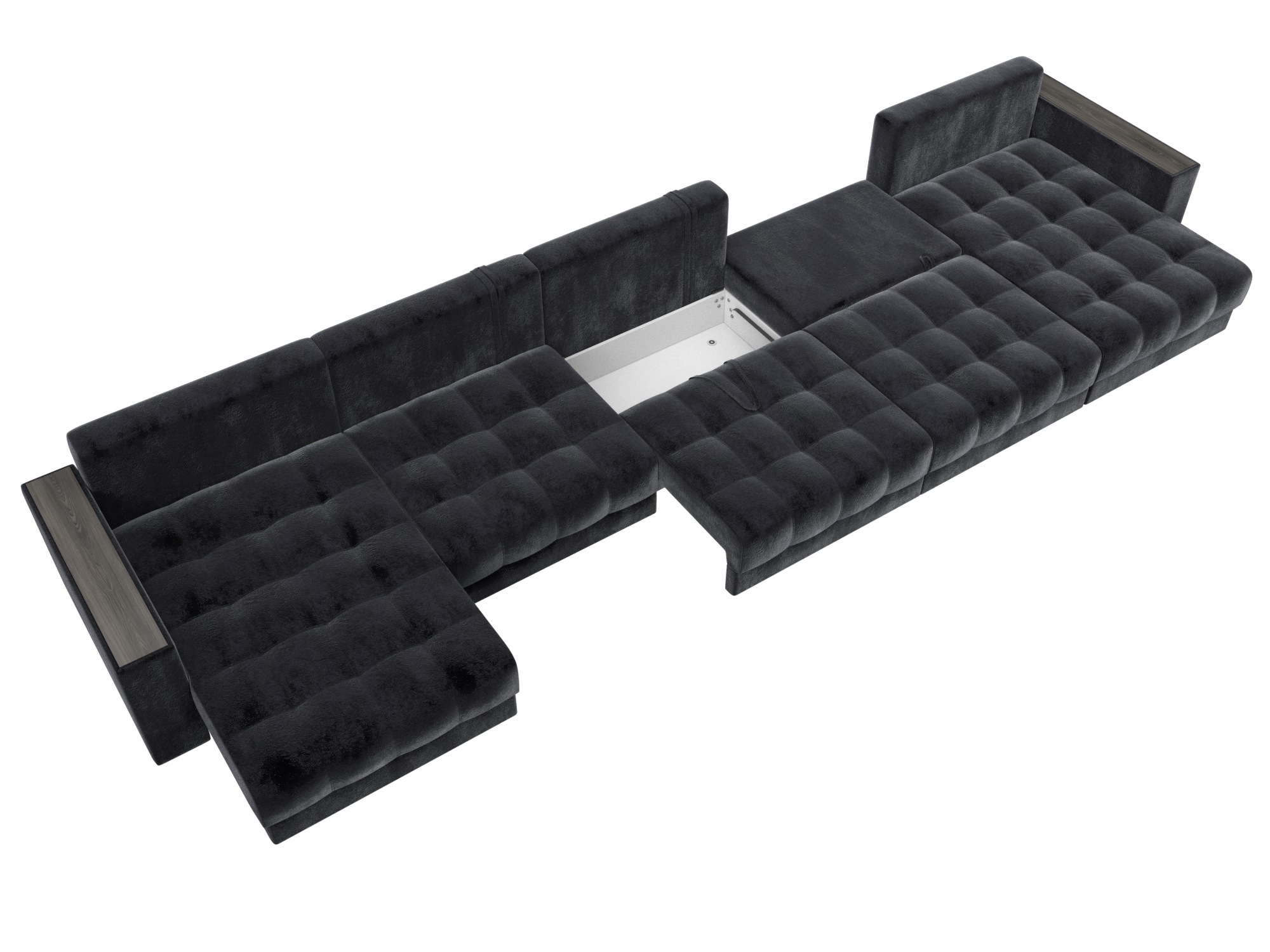 Диван П-образный Лига Диванов Лига-049 НПБ МегаЛонг с декором (велюр Tower 11 темно-серый)