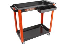 Тележка позволяет организовать размещение и хранение ручного инструмента. Оснащена резиновыми колёсами диаметром 75 мм, стойкими к воздействию агрессивных технических жидкостей. Габаритные размеры тележки - 705х360х750 мм. Снабжена дополнительным навесным лотком и держателем отвёрток. Тележка имеет два поворотных колеса и два колеса с фиксированным положением.