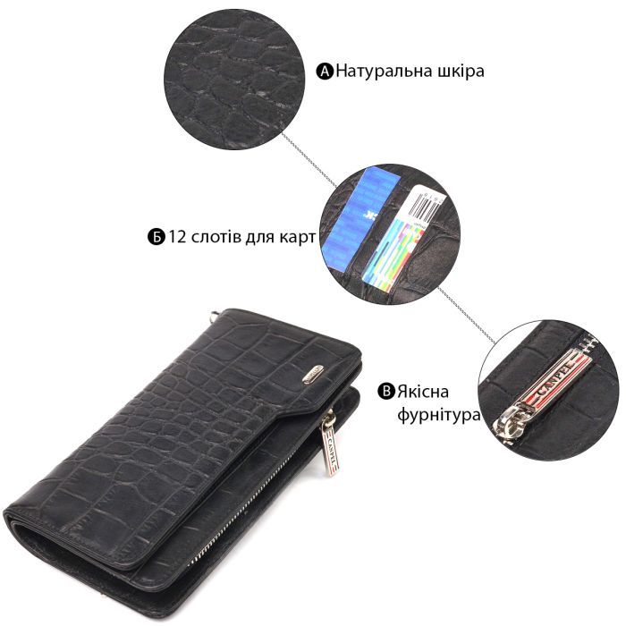 Портмоне Canpellini З натуральної шкіри Чорне (21543)