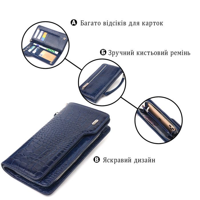 Портмоне Canpellini З натуральної шкіри Синє (21539)