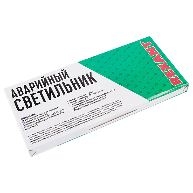 Аварийные Светильники предназначены для установки во внутренних помещениях промышленных предприятий, гражданских зданий и сооружений. Обеспечивая освещение и сообщение необходимой информации (направление выхода, выхода) в случае прекращения подачи электроэнергии.Характеристики:• Способ крепления: настенный, подвесной.• Исполнение: односторонний.• Номинальное напряжение: 180-240 В, 50/60 Гц.• Количество светодиодов в светильнике: 4 шт.• Мощность: 3 Вт.• Размеры стекла: 329x118 мм.• Размеры светильника: 355x145x20 мм.• Степень защиты: IP30.• Тип аккумуляторных батарей: никель-кадмиевые 1.2 В. • Время работы от аккумулятора: 90 минут• Материал корпуса: алюминиевый сплав.Источником света в светильнике является светодиодная линейка, использование которой дает преимущество в сравнении с применяемыми в настоящее время люминесцентными лампами и лампами накаливания. Светильник имеет два варианта крепления: настенное и потолочное. Световые указатели имеют встроенный аккумулятор и сохраняют работоспособность при отсутствии напряжения в течение 90 минут.