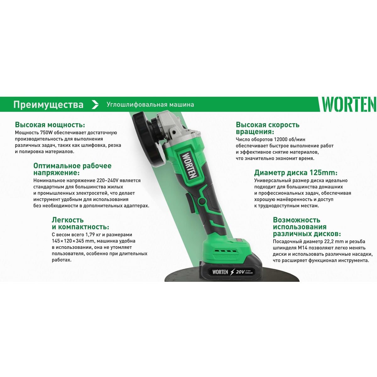 УШМ WORTEN D125 КА-90000329 2АКБ