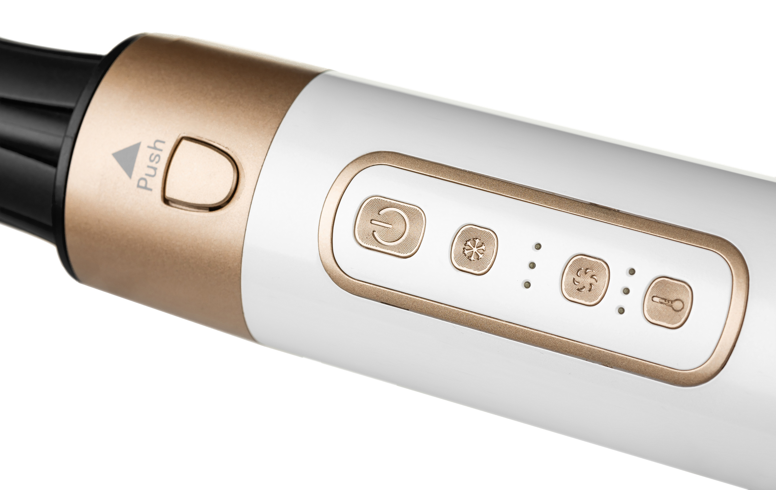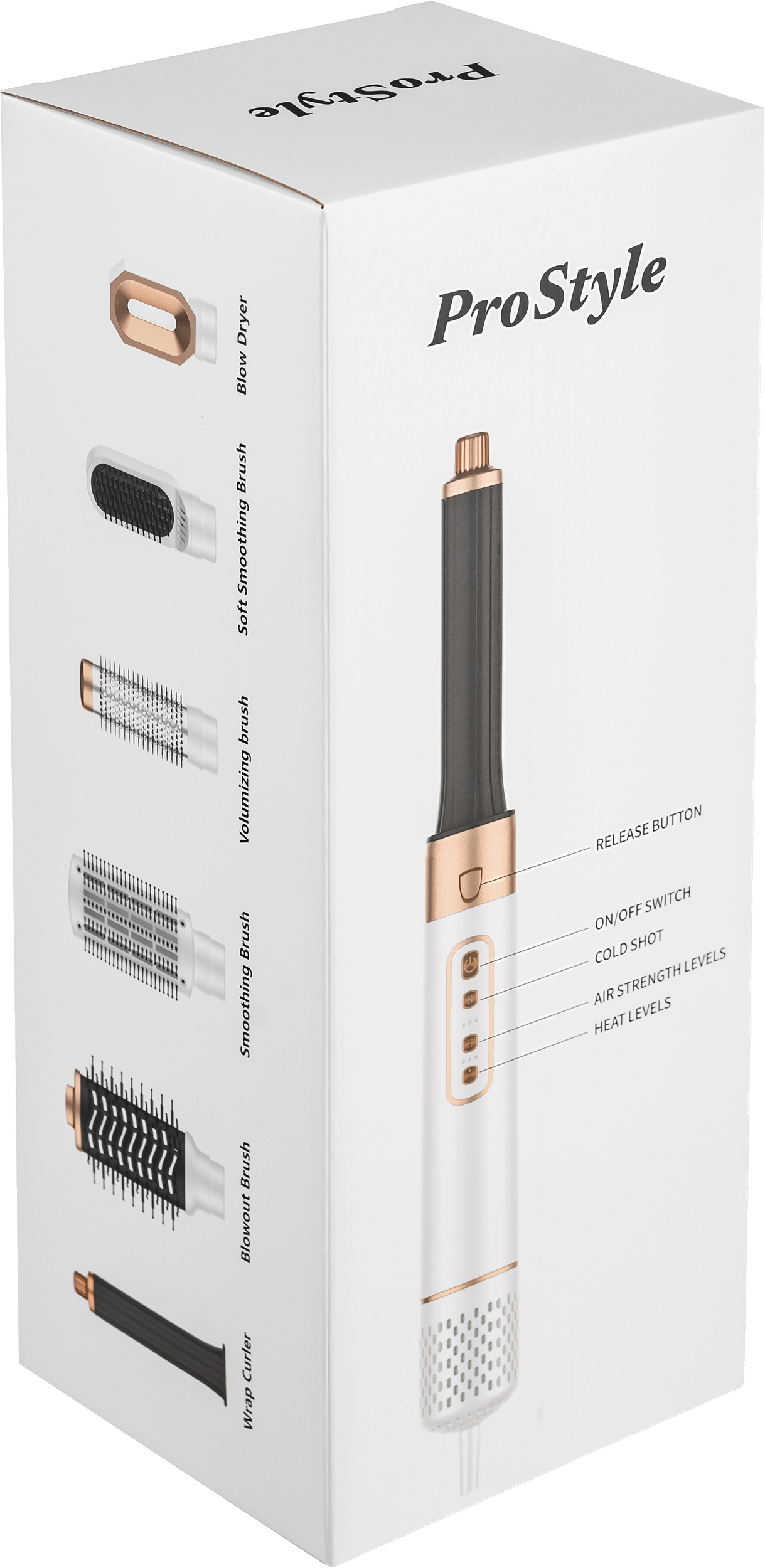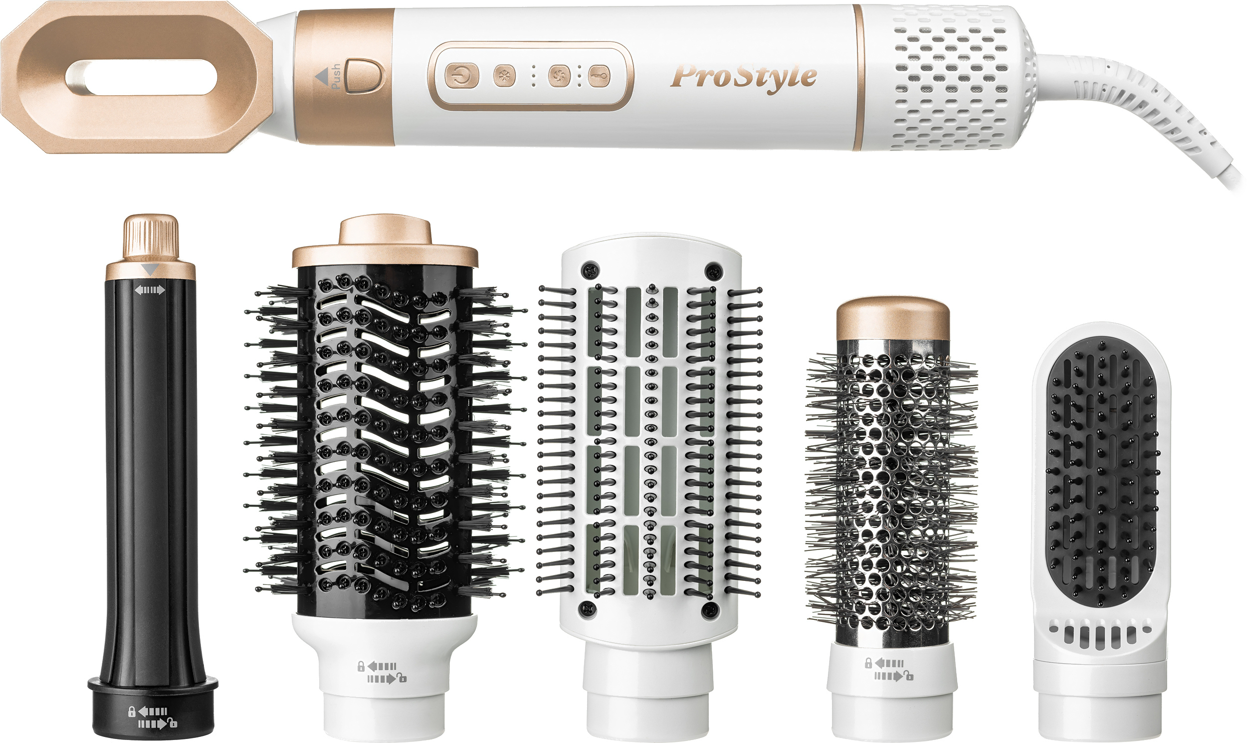 • Режим работы насадка для сушки волос, выпрямитель, насадка для локонов (диаметр — 3 см), насадка-щетка (диаметр — 3.8 см)