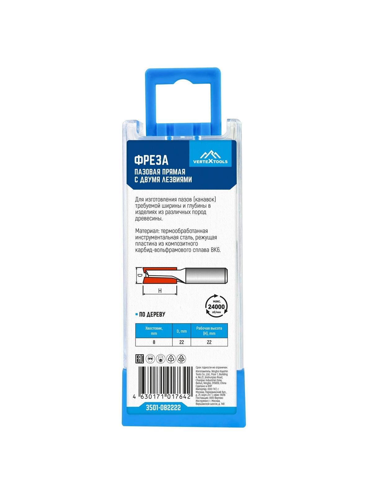 Фреза пазовая прямая с двойным лезвием 22x22x57мм VerteXtools