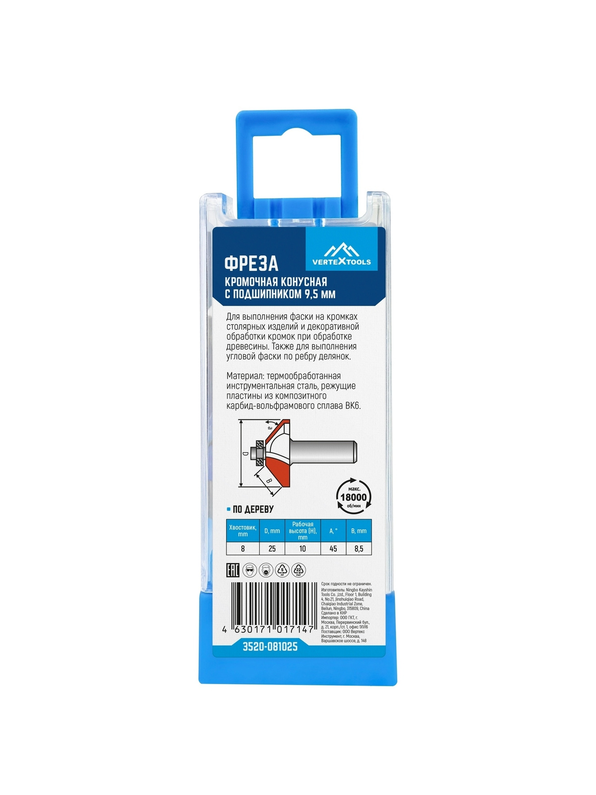 Фреза кромочная конусная с подшипником 25x10x54,3мм VerteXtools
