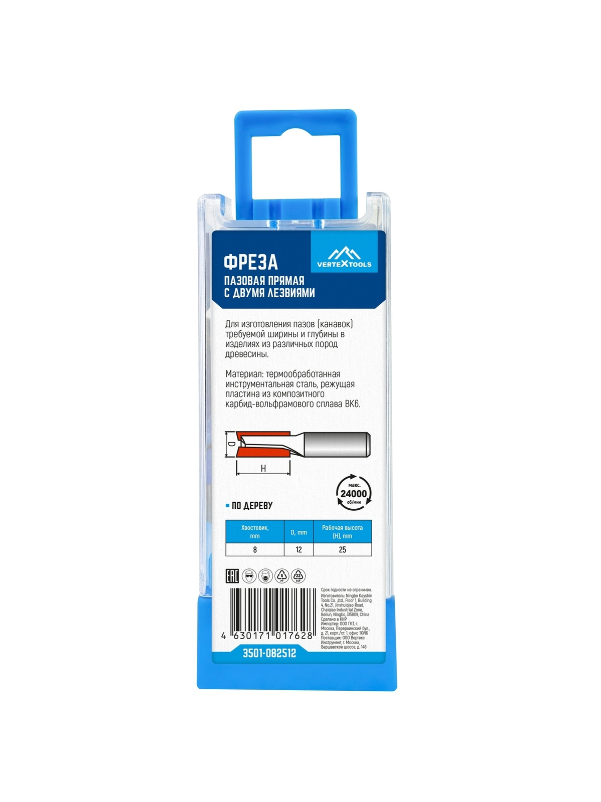 Фреза пазовая прямая с двойным лезвием 12x25x60,4мм VerteXtools