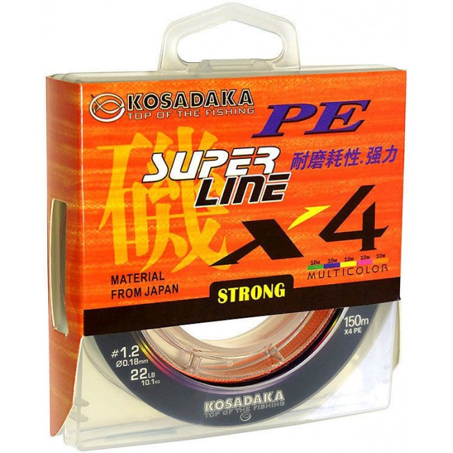 Плетенка KOSADAKA SUPER PE X4 MUITICOLOR 0.18 мм 150 м цвет МНОГОЦВЕТНЫЙ