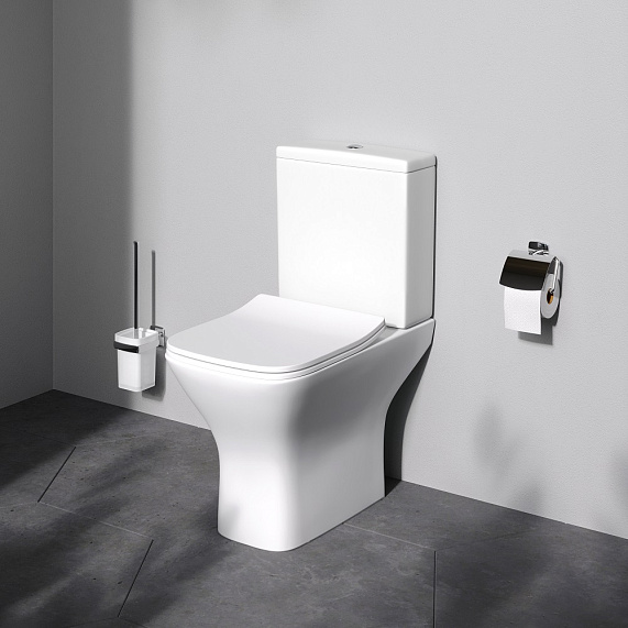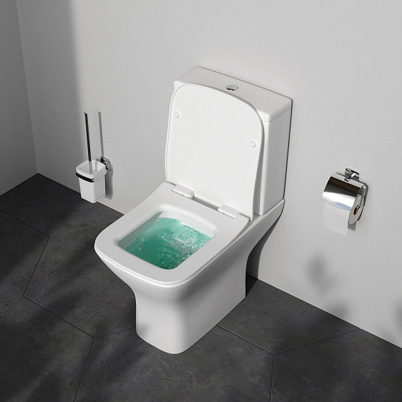 Безободковый унитаз-компакт Gem выполненный в трендовой квадратной с использованием передовых технологий станет отличным дополнением абсолютно любой ванной комнаты. Разработанный специалистами AM.PM Design унитаз полностью готов к подключению и не требует монтажа в стену. В комплект уже входит настроенная арматура что значительно упрощает установку. Благодаря безободковой конструкции уход за унитазом становится гораздо проще а чистота сохраняется на более длительный срок. Комплектация включает быстросъёмное сиденье из дюропласта — гигиеничного и устойчивого к царапинам материала что обеспечивает удобство и долговечность использования. ""