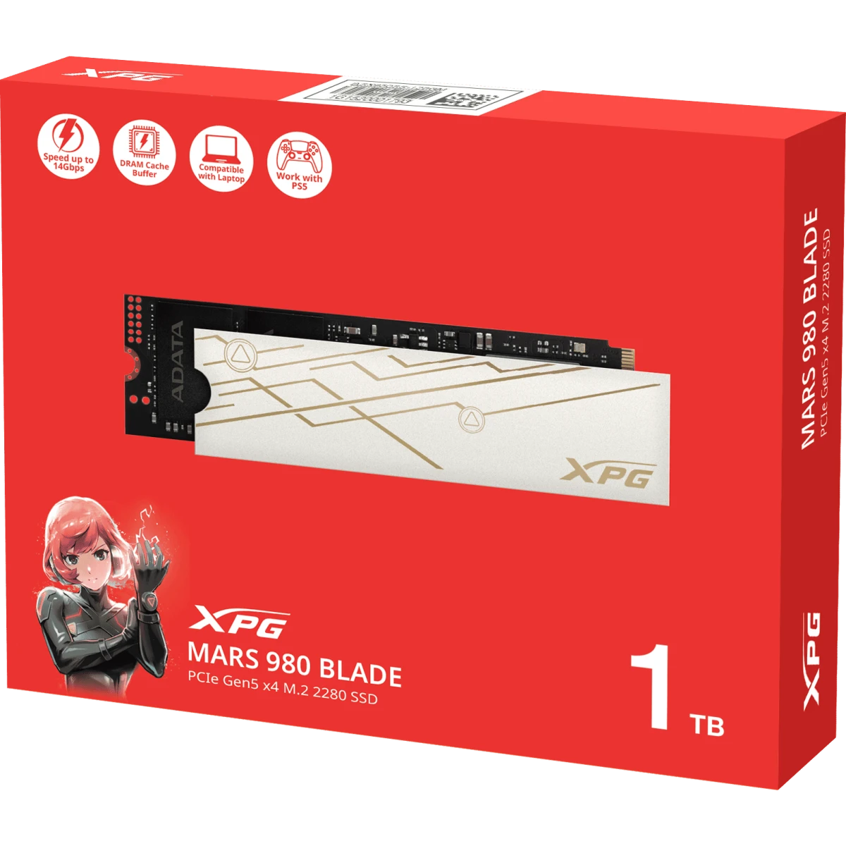 SSD ADATA XPG Mars 980 Blade (SMAR-980B-1TCS), 1000GB, M.2(22x80mm), NVMe, PCIe 5.0 x4, 3D NAND, R/W 14000/10000MB/s, IOPs 1 60