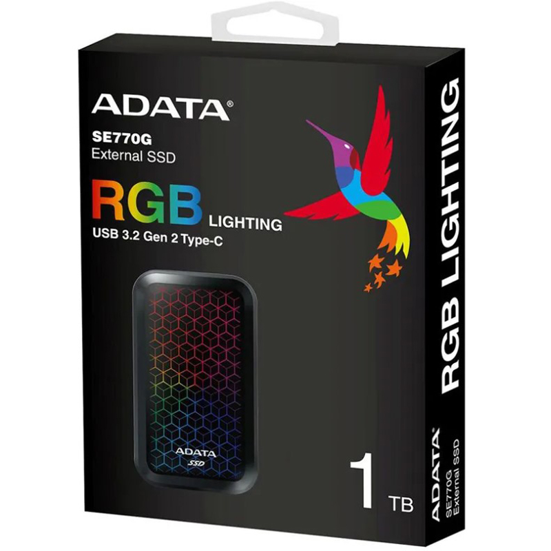 Внешний SSD ADATA SE770G (ASE770G-1TU32G2-CBK) Black1.0Tb (USB3.2 gen 2 type C, 1000/800Mbs, 99x58x18mm,138g, RGB, OTG, PS5/XBOX совместим)