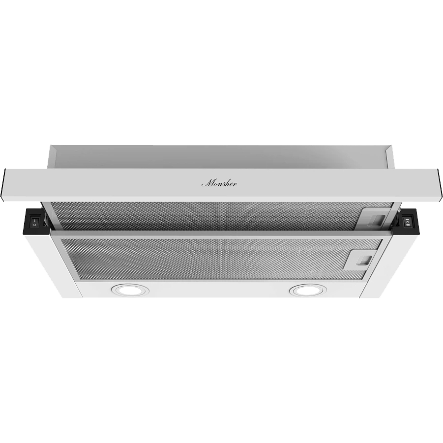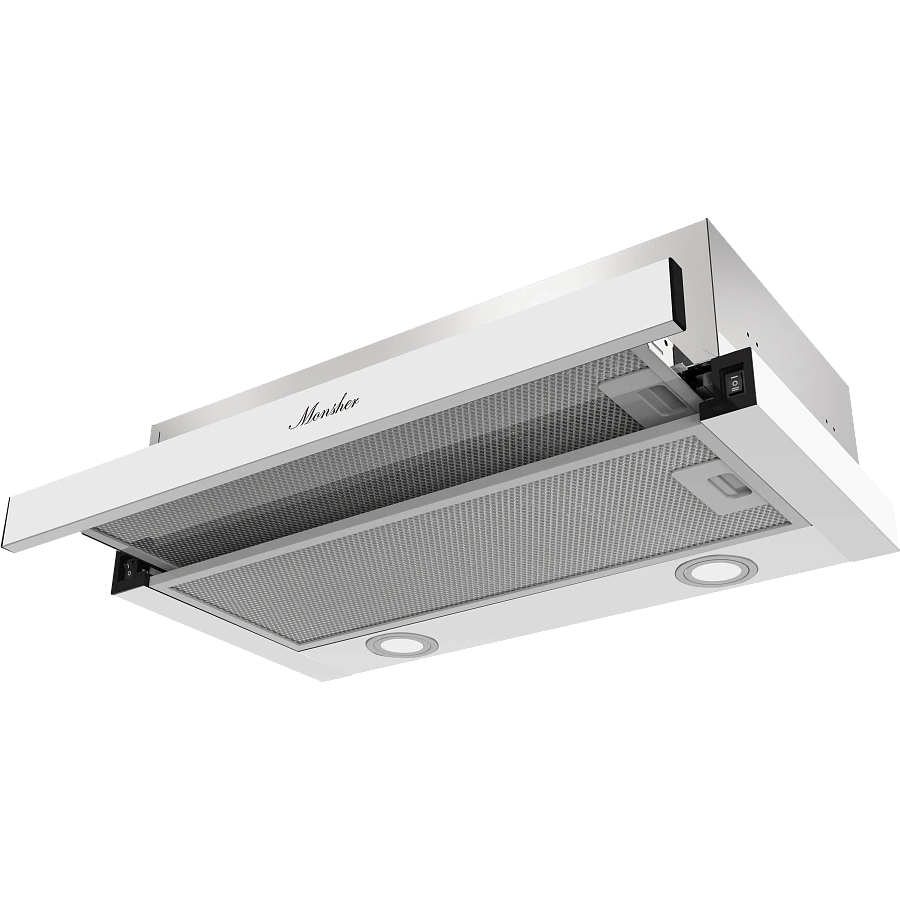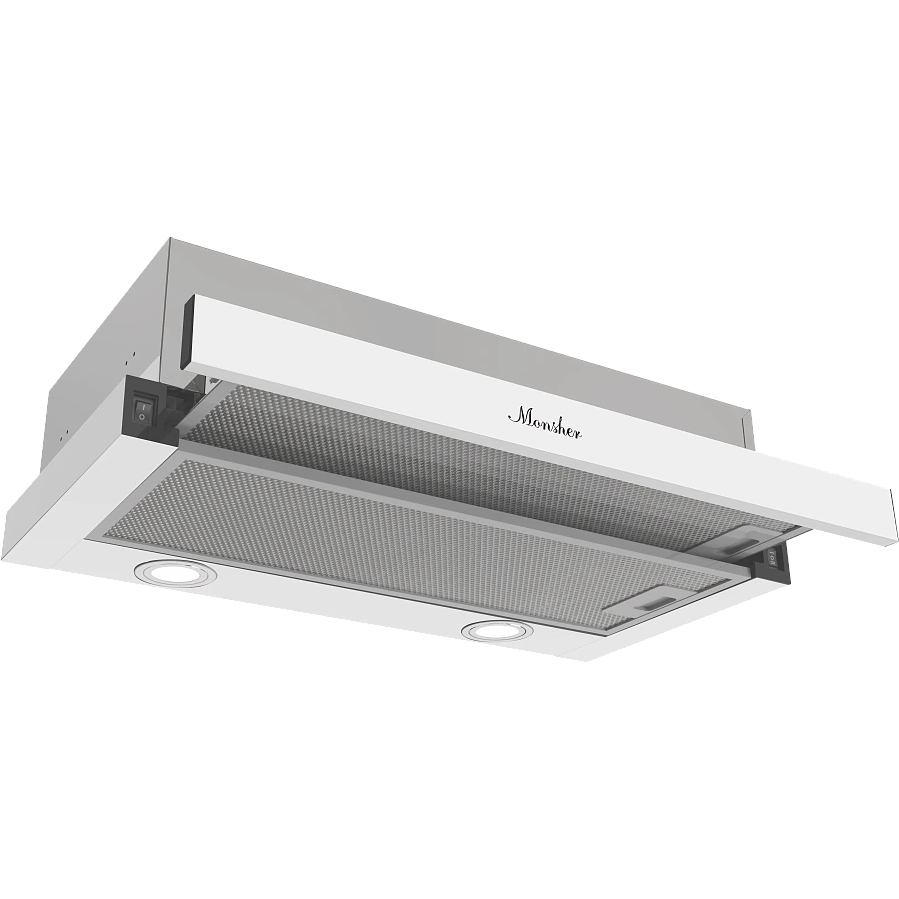 Встраиваемая вытяжка MONSHER/ Встраиваемая вытяжка MONSHER, телескопическая, 60 см, High-Tech, макс. Производительность 550 м3/ч, 2 скорости, механическое управление, светодиодное освещение, уровень шума 47 дБ, цвет белый