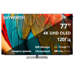77'' OLED, Ultra HD, Google TV, 900Nit, Bluetooth, 120Hz, Freesync Premium (AMD), 2.1.2 ch (2*15W+25W SUB+5W*2) Dolby Atmos, 4хHDMI, 2хUSB, Digital Audio Output, Composite output, LAN,CI, динамическая подсветка при включении, подставка с функцией поворота 10°, ультра-тонкий корпус 3,9мм, кожаные шильдики, 2025