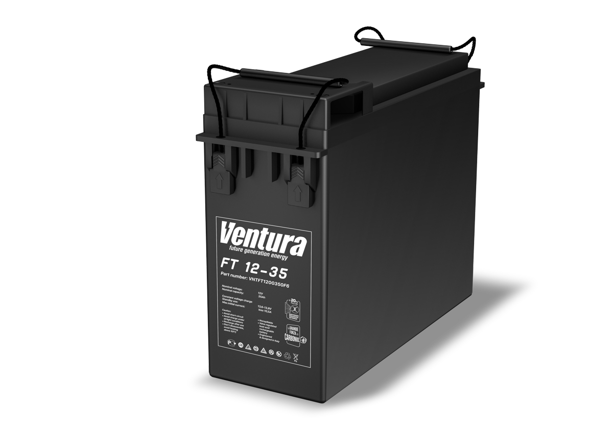 Особенность серии – фронт-терминальное исполнение аккумуляторов, обеспечивающее удобство монтажа и обслуживания аккумуляторов в телекоммуникационных стойках или стандартных шкафах. Аккумуляторы Ventura FT идеальны для применения