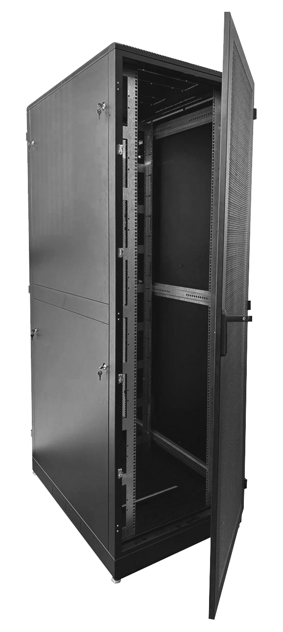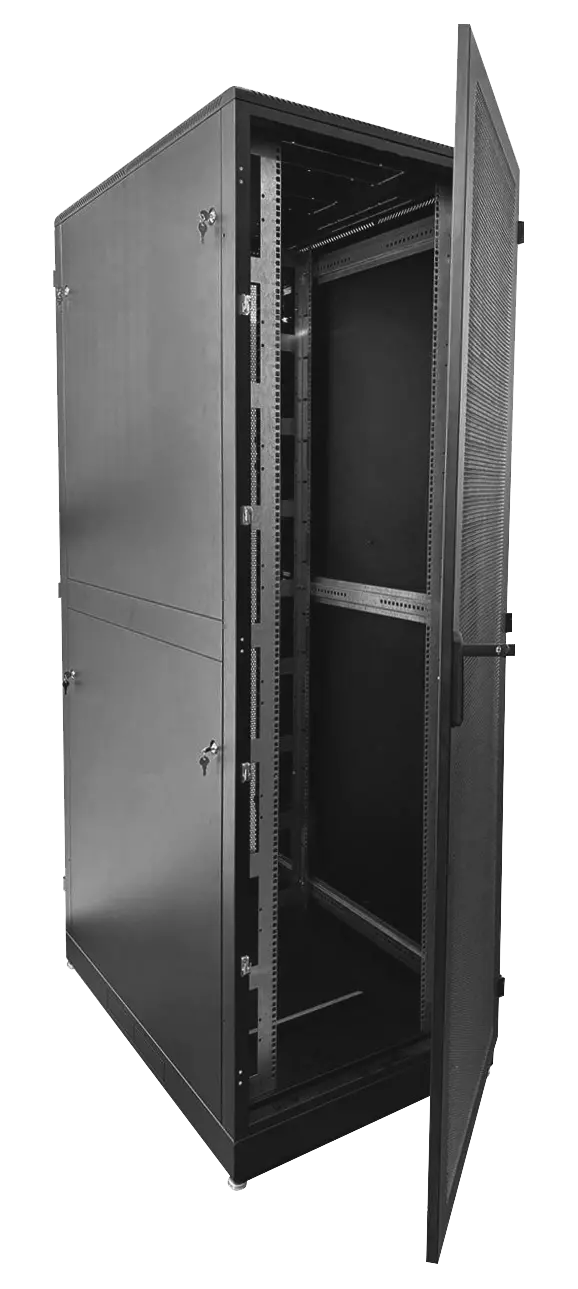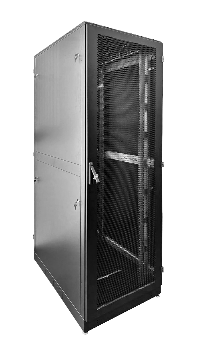 Шкаф телекоммуникационный напольный 42U (600 × 1000) дверь перфорированная 2 шт., цвет чёрный, ШТК-М-42.6.10-44АА-9005
