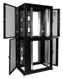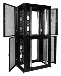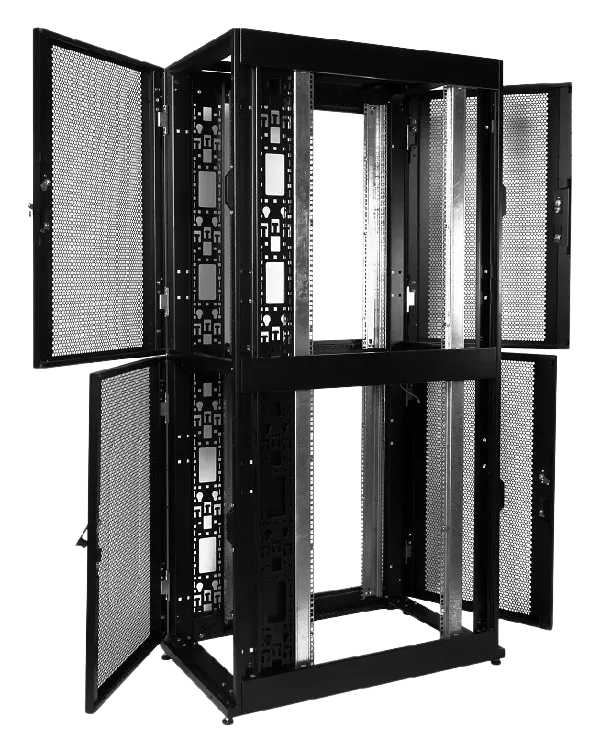 Шкаф серверный ПРОФ напольный колокейшн 40U (600 × 1000) 2 секции, дверь перф. 2 шт., чёрный, в сборе, ШТК-СП-К-2-40.6.10-44АА-9005