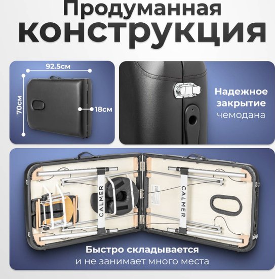 ✅ Массажный стол Grotto Two 70 (бежевый) — это практичное и удобное решение для косметологических и SPA процедур. Его складная конструкция и две секции позволяют легко адаптировать стол под разные виды процедур, обеспечивая комфорт как для мастера, так и для клиента.✅ Регулировка высоты осуществляется с помощью механического механизма, что позволяет настроить стол в диапазоне от 59 до 80 см.✅ Прочный алюминиевый каркас гарантирует надежность и долговечность, выдерживая нагрузку до 150 кг.✅ Комфортное ложе с обивкой из ПВХ создает приятные условия для клиента.✅ Регулируемый подголовник и подлокотники добавляют удобства во время процедур.✅ Наличие отверстия для лица и заглушки обеспечивает комфортное положение клиента во время массажа.✅ В сложенном виде стол занимает минимальное пространство (92.5×18×70 см), что упрощает его хранение и транспортировку.✅ Чехол для переноски в комплекте защищает стол от загрязнений и повреждений.⚠️ Массажный стол Grotto Two 70 идеально подходит для использования в салонах красоты, SPA-центрах и медицинских учреждениях, обеспечивая комфортные условия для различных процедур и повышая эффективность работы мастера.✅ Массажный стол Grotto Two 70 (бежевый) — это практичное и удобное решение для косметологических и SPA процедур. Его складная конструкция и две секции позволяют легко адаптировать стол под разные виды процедур, обеспечивая комфорт как для мастера, так и для клиента.✅ Регулировка высоты осуществляется с помощью механического механизма, что позволяет настроить стол в диапазоне от 59 до 80 см.✅ Прочный алюминиевый каркас гарантирует надежность и долговечность, выдерживая нагрузку до 150 кг.✅ Комфортное ложе с обивкой из ПВХ создает приятные условия для клиента.✅ Регулируемый подголовник и подлокотники добавляют удобства во время процедур.✅ Наличие отверстия для лица и заглушки обеспечивает комфортное положение клиента во время массажа.✅ В сложенном виде стол занимает минимальное пространство (92.5×18×70 см), что упрощает его хранение и транспортировку.✅ Чехол для переноски в комплекте защищает стол от загрязнений и повреждений.⚠️ Массажный стол Grotto Two 70 идеально подходит для использования в салонах красоты, SPA-центрах и медицинских учреждениях, обеспечивая комфортные условия для различных процедур и повышая эффективность работы мастера.