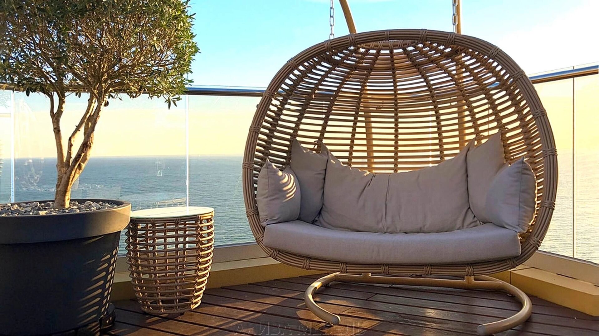 Подвесное двухместное кресло "Лаос" садовое уличное с плетением из искусственного ротанга на террасу