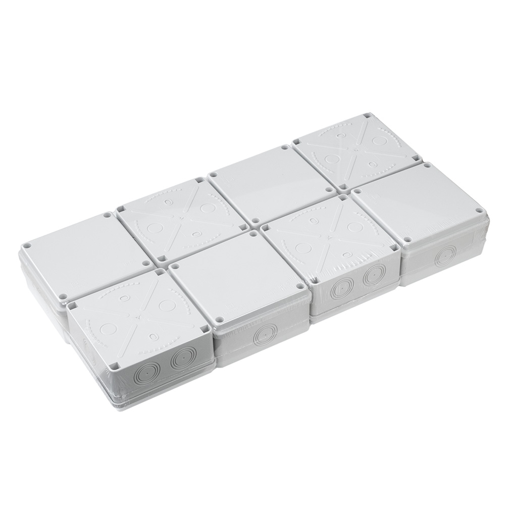 Распаячные (распределительные) коробки применяются для защиты мест соединения проводов и кабелей от механических повреждений, от проникновения пыли и влаги, а лаконичный дизайн способствуют эстетичному монтажу проводки. Коробки имеют высокую стойкость к воспламенению. Подходят для использования в закрытых помещениях. Материал изготовления коробок является безгалогенным, что позволяет использовать изделие в общественных местах, с высоким скоплением людей. В определенных случаях будет удобен вариант упаковки по 8 шт.