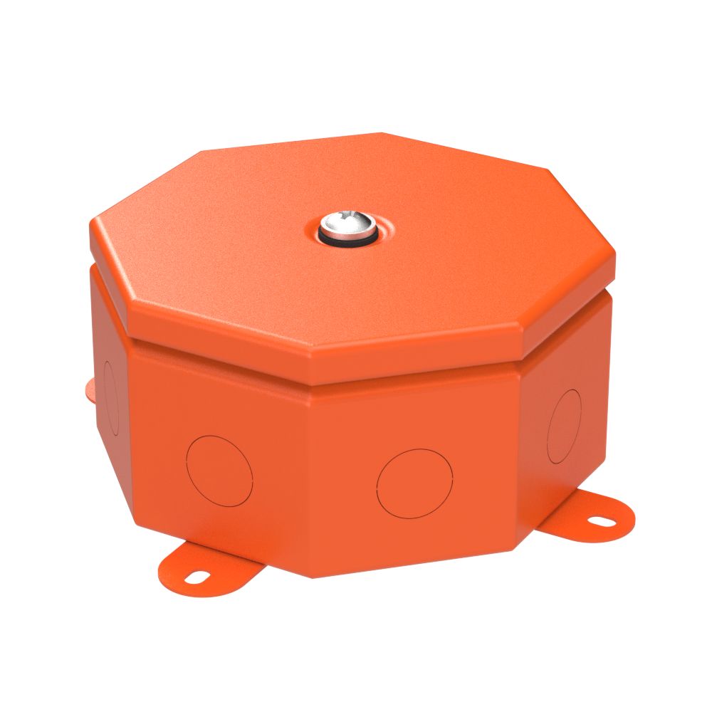 Металлическая коробка Октагон для огнестойких кабельных линий отличается формой изделия - коробка имеет 8 сторон, на каждой из которых имеется выламываемое отверстие. Это позволяет ввести большее количество кабеленесущих изделий или кабельно-проводниковой продукции через гермоввод (входят в комплект в количестве 8 штук), который обеспечивает высокую степень защиты IP55. Использование специальных сальников или соединительных муфт (в комплект не входят) обеспечит степень защиты IP68 от вредных внешних воздействий, таких как ударные нагрузки и проникновение влаги и пыли. Корпус коробки изготовлен из листовой стали с последующим окрашиванием всех поверхностей. Максимальный диаметр ввода труб при помощи вводных муфт (кабельных вводов) 25 мм. Возможен прямой монтаж при пристреливании рядом с существующим отверстием для крепления.