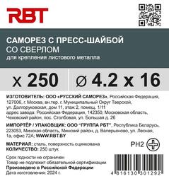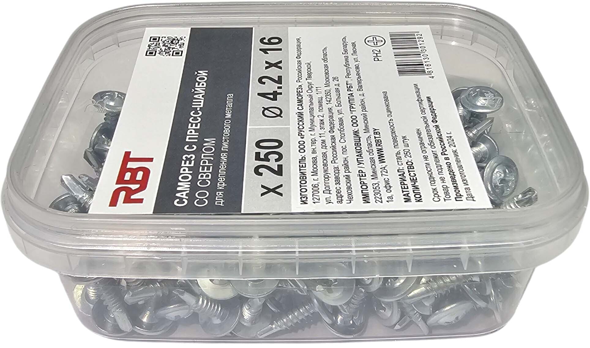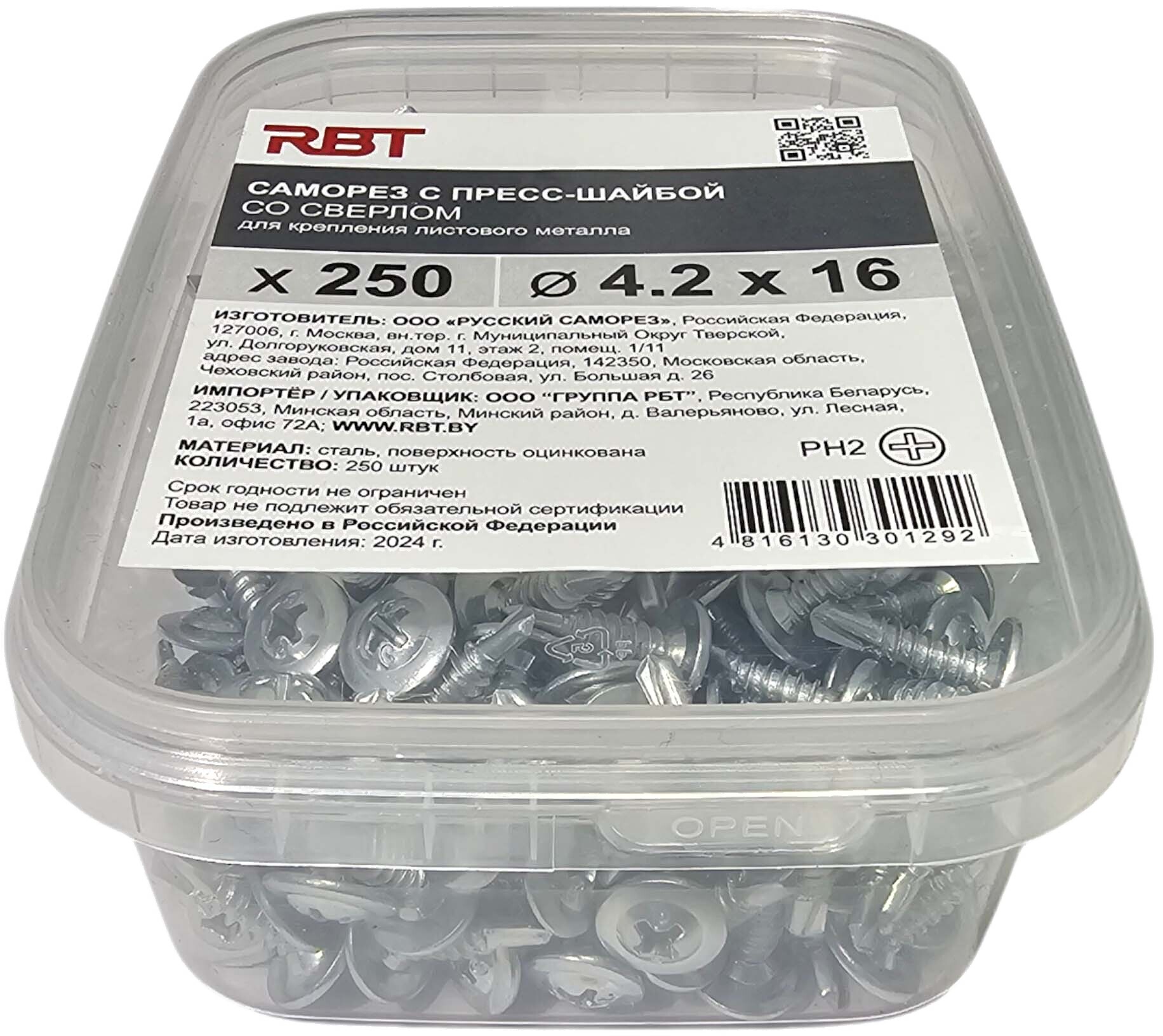 Саморез RBT СПШС/Ц 4.2х16 с прессшайбой со сверлом мелкий шаг (250шт, оцинкованный)