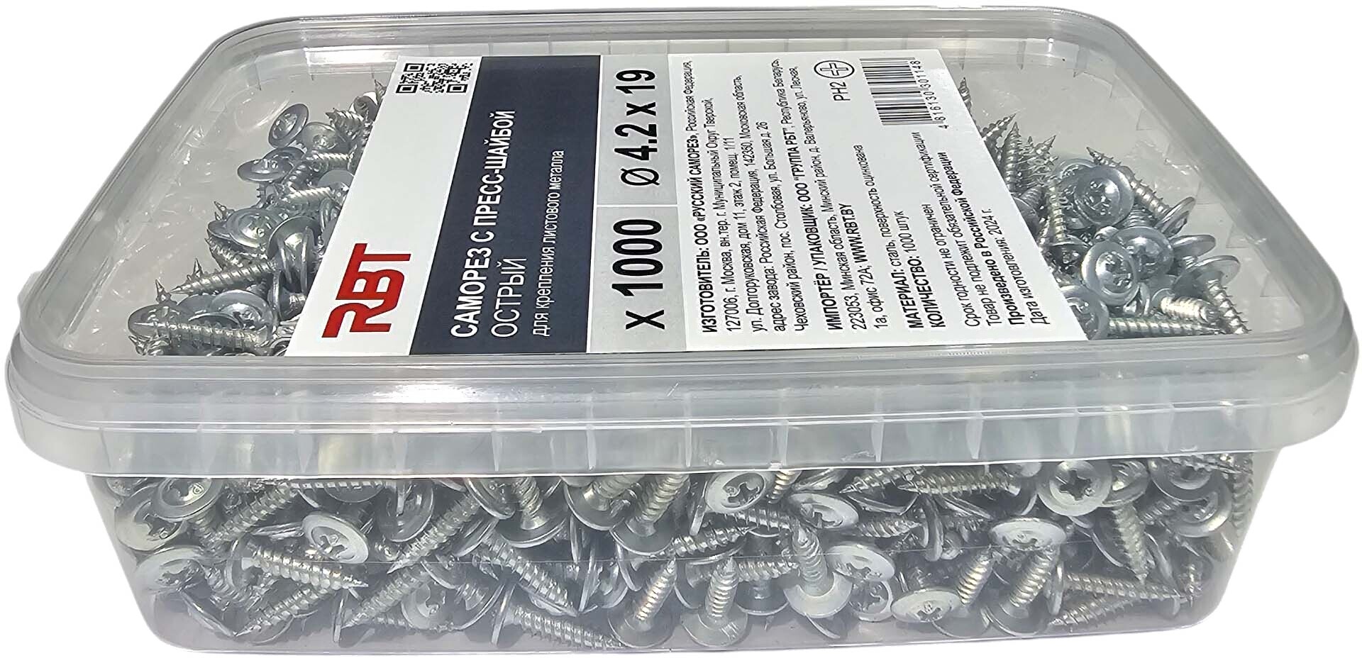 Саморез RBT СПШО/Ц 4.2х19 с прессшайбой острый мелкий шаг (1000шт, оцинкованный)