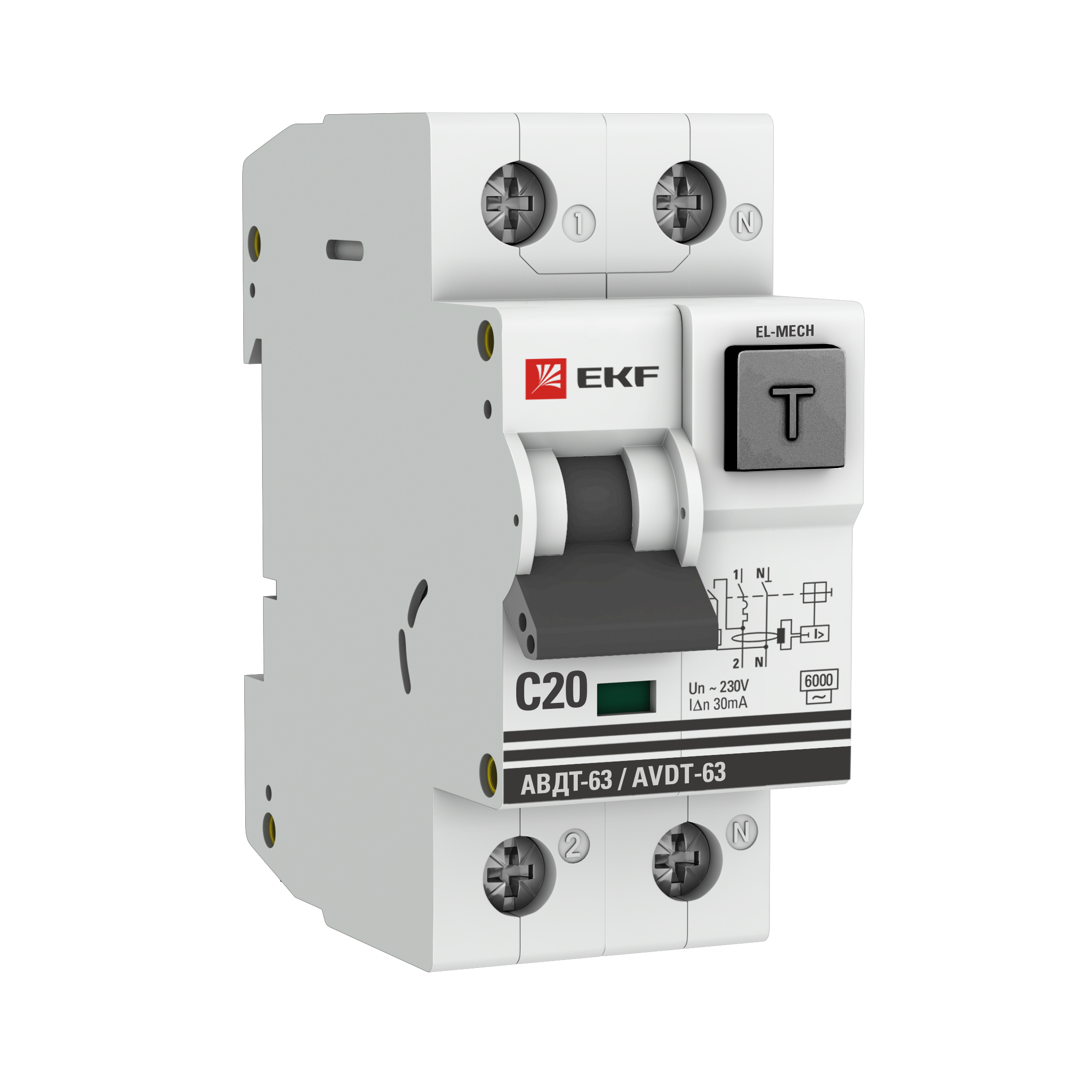 Автоматический выключатель дифференциаль ного тока АВДТ-63 EKF PROxima представляет аппарат, сочетающий функции автоматического выключателя с электромеханическим или электронным УЗО. При обнаружении автоматическим выключателем в защищаемом участке сети тока утечки (повреждения) на землю или сверхтока (тока перегрузки иликороткого замыкания) происходит срабатывание устройства, приводящее к отключению защищаемой сети. Возможна коммутация алюминиевым и медным проводником.Автоматический выключатель дифференциального тока малогабаритный АВДТ-63М EKF PROxima представляет аппарат, сочетающий функции автоматического выключателя с электронным УЗО типа АС в компактном корпусе шириной один модуль. При обнаружении автоматическим выключателем на защищаемом участке сети тока утечки (повреждения) на землю или сверхтока (тока перегрузки или короткого замыкания) происходит срабатывание устройства, приводящее к отключению защищаемой сети. Особое отличие дифференциальных автоматических выключателей EKF с электронным УЗО – в наличии блока защиты от перенапряжения. Возможна коммутация алюминиевым и медным проводом.