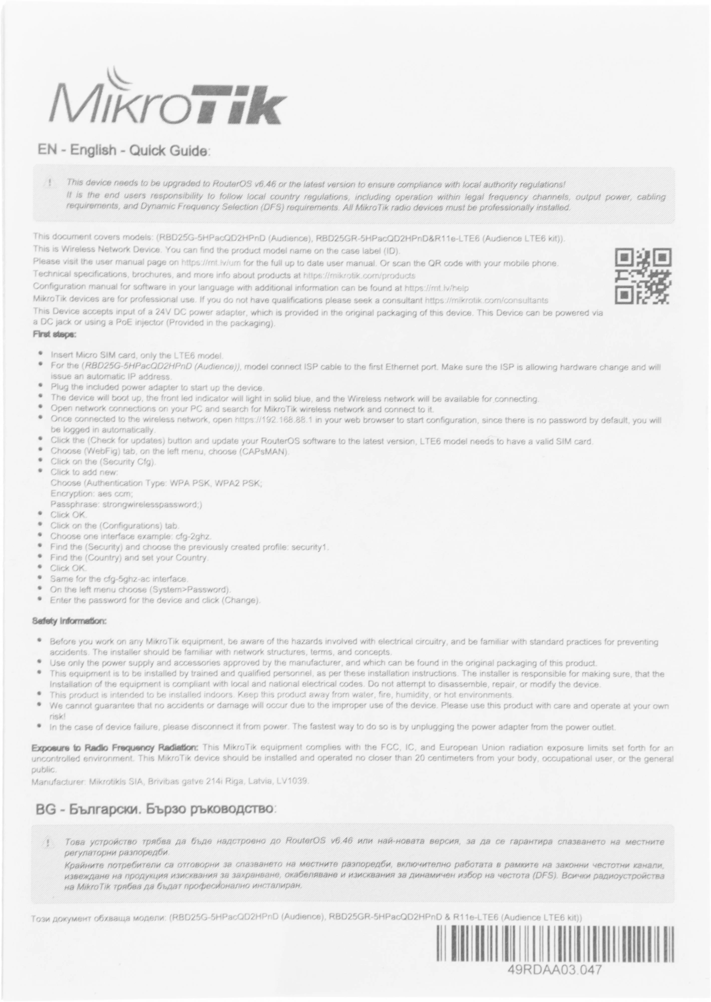 • Ссылка на сайт вендора https://mikrotik.com/product/audience