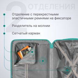• Особенности конструкции внутренние ремни-фиксаторы, перегородка на молнии, карман-органайзер