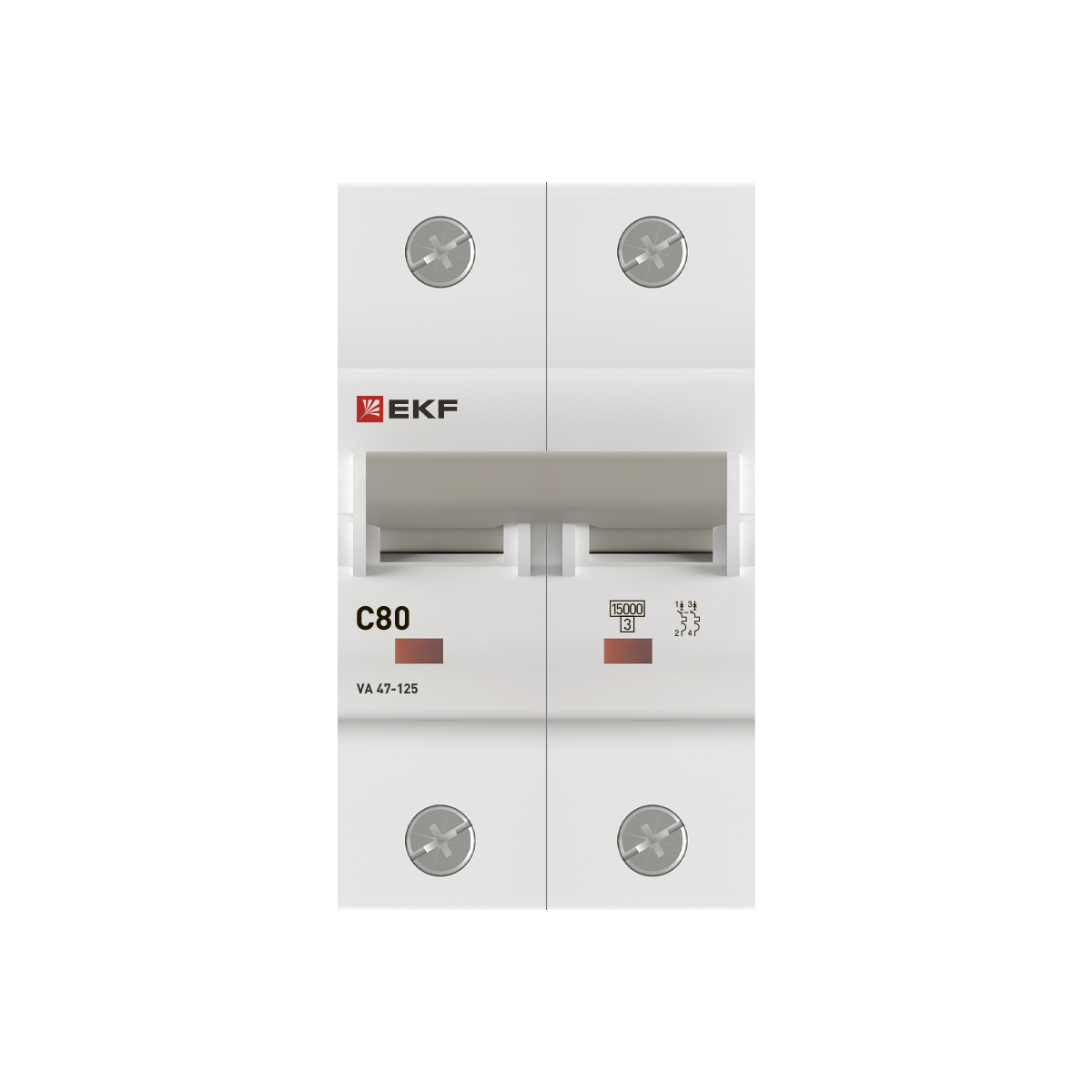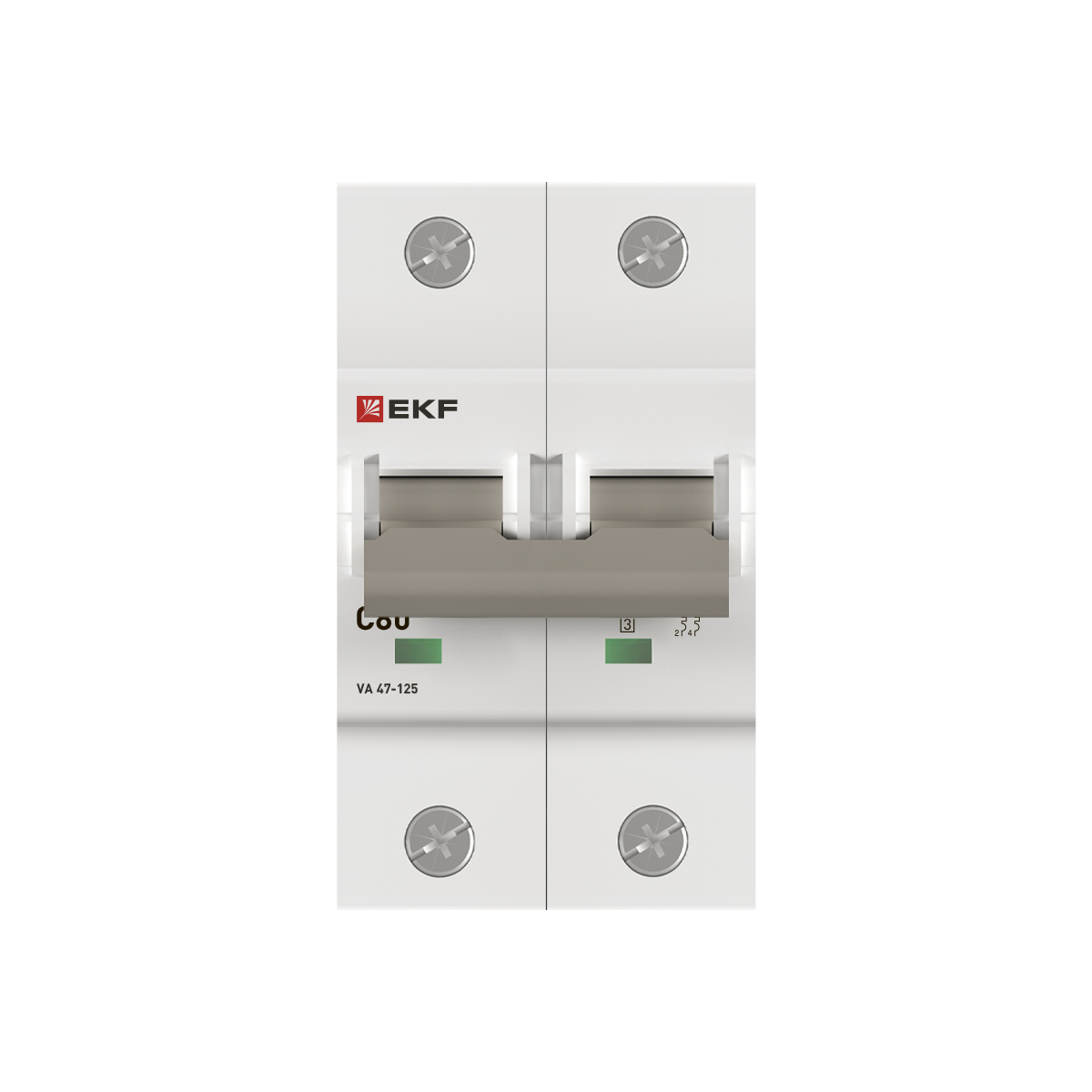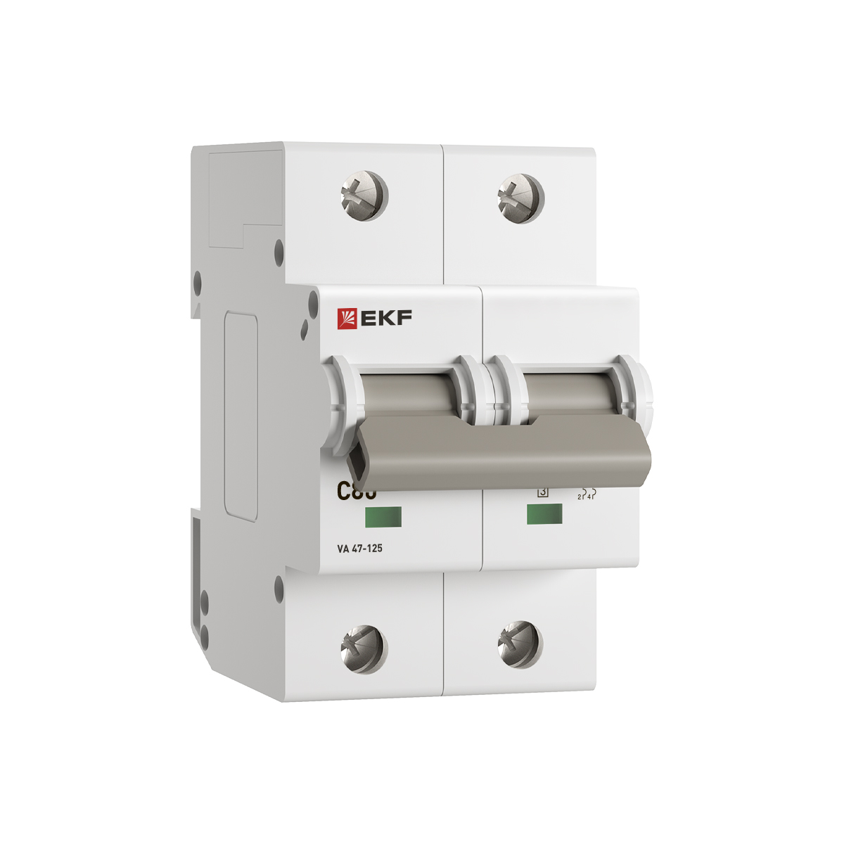 "Автоматические выключатели ВА 47-125 EKF PROxima благодаря высокой предельной коммутационной способности 15 кА могут использоваться вместо силовых автоматических выключателей. Выключатели имеют ширину корпуса 1,5 модуля (27 мм), производятся с номинальными токами до 125 А в одно-, двух-, трех- и четырехполюсном исполнении.