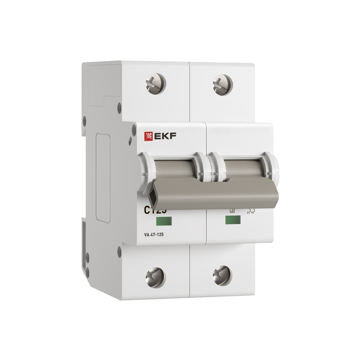 "Автоматические выключатели ВА 47-125 EKF PROxima благодаря высокой предельной коммутационной способности 15 кА могут использоваться вместо силовых автоматических выключателей. Выключатели имеют ширину корпуса 1,5 модуля (27 мм), производятся с номинальными токами до 125 А в одно-, двух-, трех- и четырехполюсном исполнении.