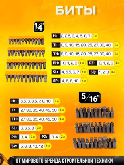 • Биты (насадки-отвертки) (Hex, Torx, Phillips, Pozidriv, Slotted)