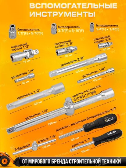• Посадочный размер (квадрат) 1/4", 3/8", 1/2"