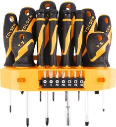 - Комплектация Отвертки стандартные: PH0×75, PH1×100, PH2×38, PH2×100 мм; SL3.0×75, SL5.5×100, SL6.0×38 мм; Отвертки прецизионные: PH000×50, PH00×50 мм; SL2.0×50, SL2.5×50 мм; Вставки (биты) 1/4" 25 мм: PH1, PH2; SL4.0, SL6.0; T10, T15, T20; Отвертка для хомутов 1/4"×100 мм; Пластиковый подвесной держатель