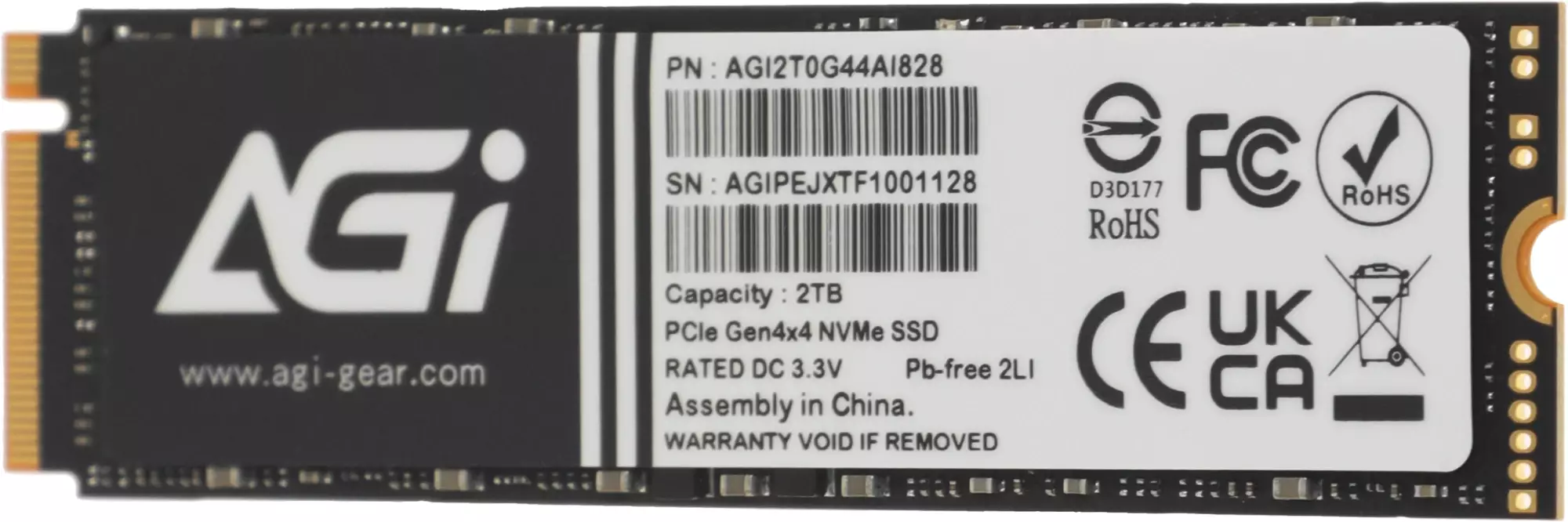 Твердотельный накопитель AGi 2048ГБ, M.2 2280, PCIe 4.0 x4, M.2 AI828 (AGI2T0G44AI828-CB)