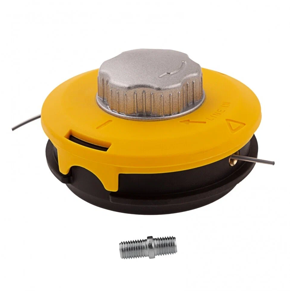 Катушка тримммерная Denzel 96322 полуавтомат, легкая заправка лески, гайка M10x1,25, винт M10-M10, алюм. кнопка